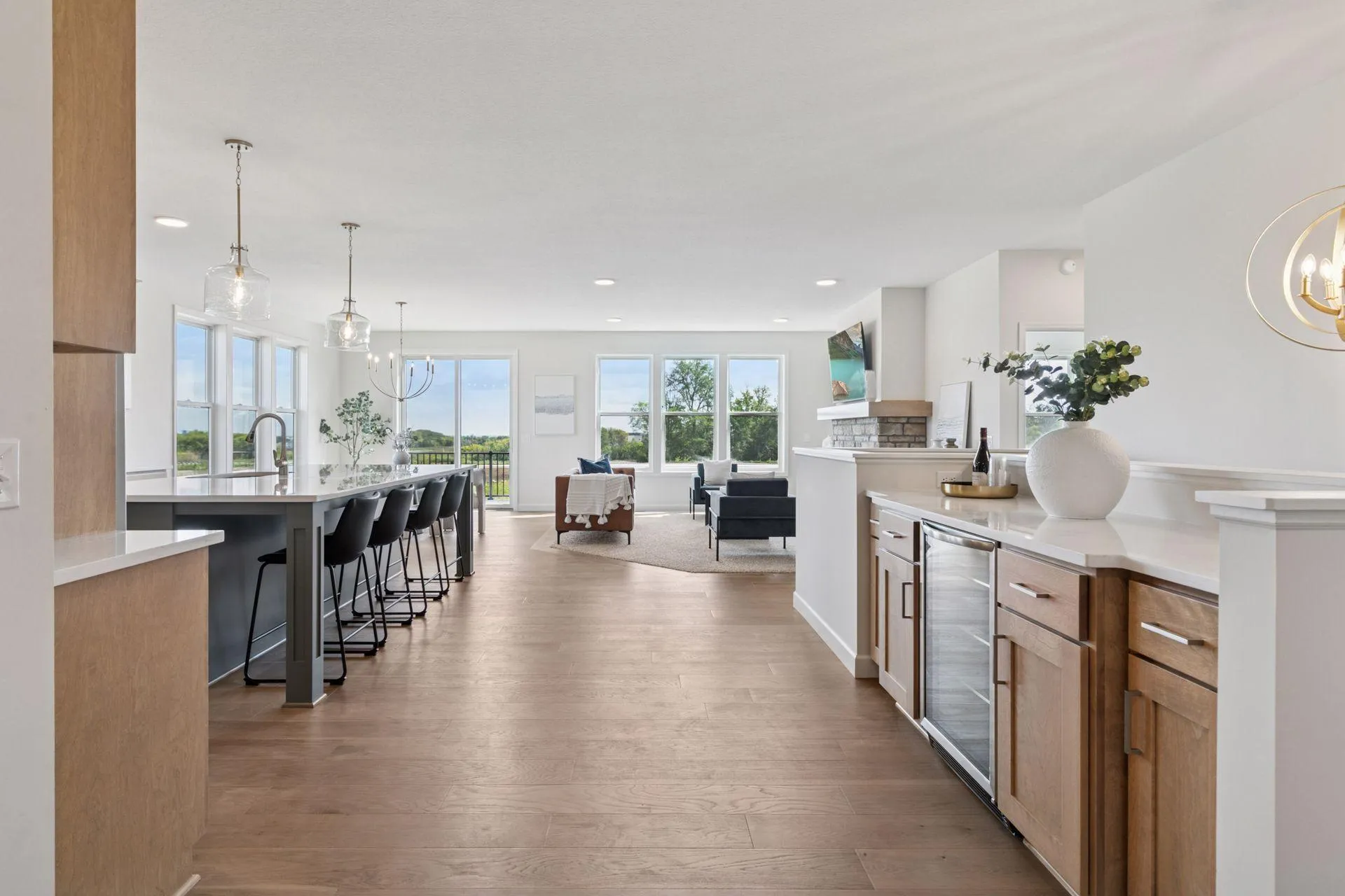 Great Room: The spacious great room is perfect for family gatherings and entertaining, featuring an open layout that flows seamlessly into the dining area and kitchen. Gas Fireplace