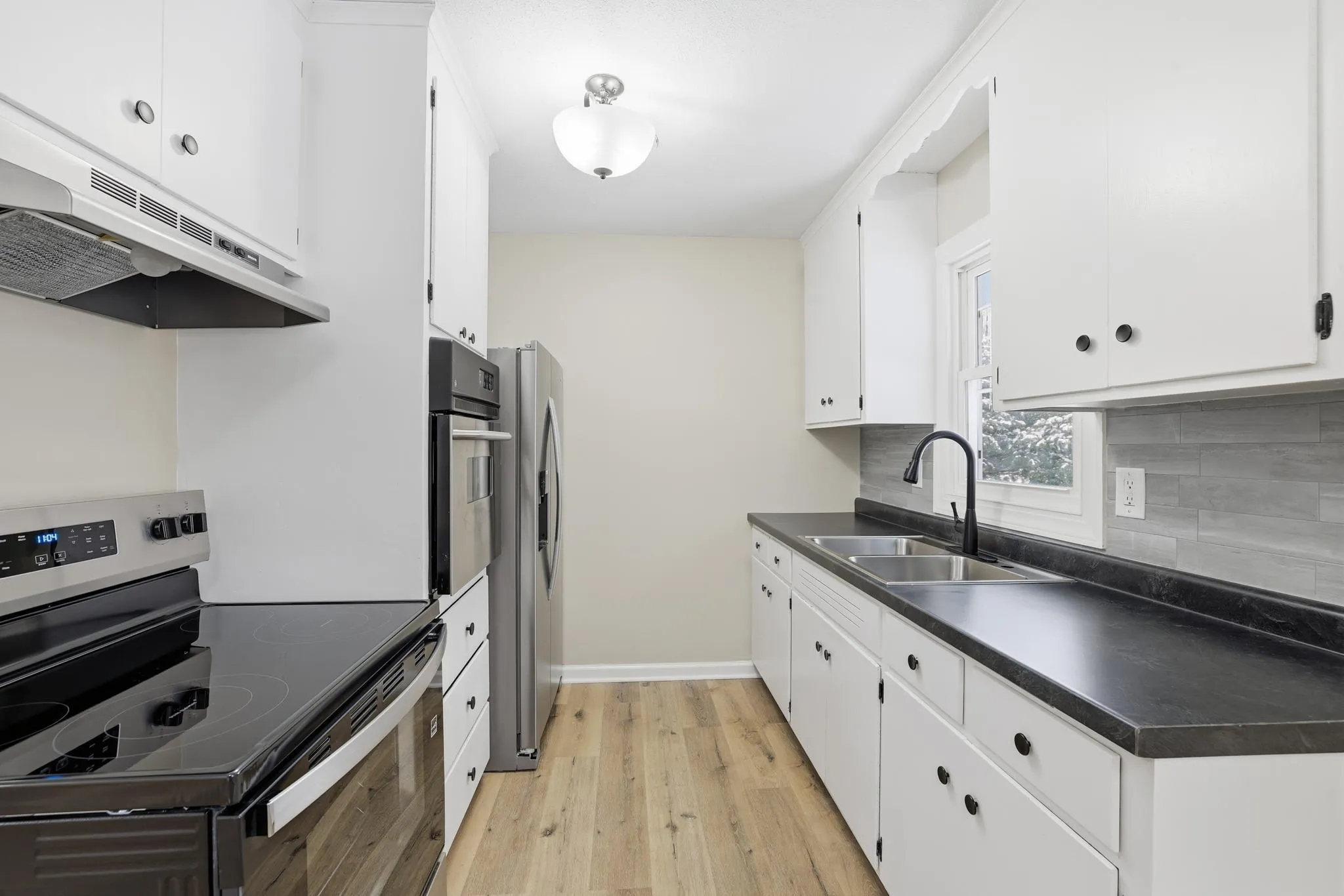Rambler with 5BR floor plan, 2-car attached garage, 3-season porch, hardwood floors, and finished basement. Property offers ample front and backyard space and deep driveway.