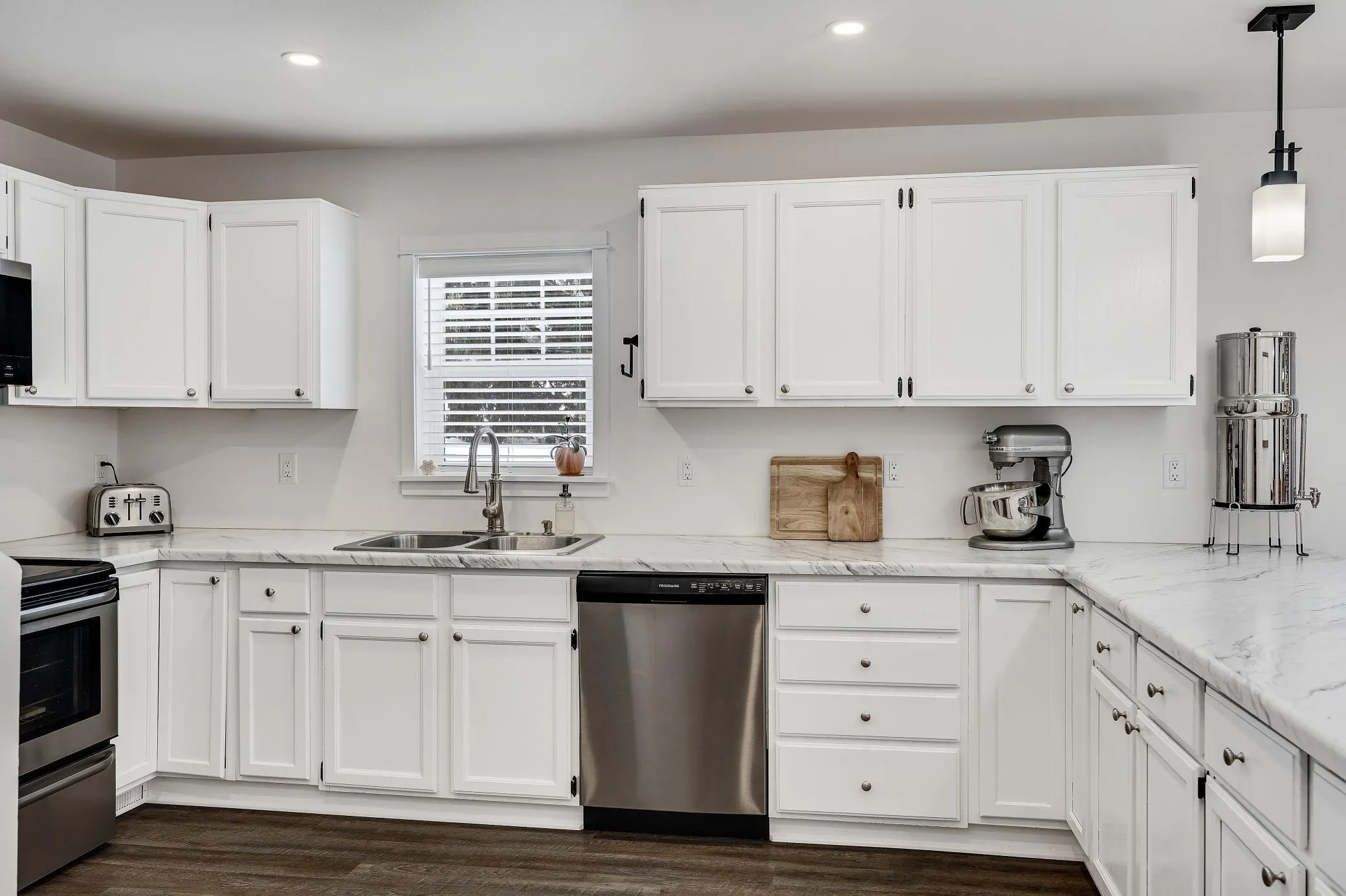 This recently renovated 3-bedroom, 2-bath residence was taken down to the studs in 2021 and rebuilt with quality and care throughout. Updates include all-new electrical and plumbing, spray-foam insulation, modern windows, siding, metal roof, deck, two-car garage, and premium interior finishes.