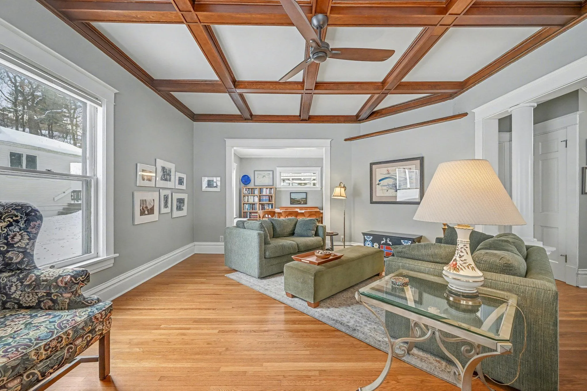 Welcome to 814 Central Ave, an exceptional 1905 two-story home offering timeless turn-of-the-century charm with outstanding upkeep, just steps from downtown shops and restaurants. From the moment you arrive, the spacious screened front porch invites you to relax and enjoy the setting, while inside you’re greeted by a stunning foyer with an open staircase, gleaming hardwood floors, classic columns, and abundant natural light. The living room showcases original beamed ceilings and exquisite beveled glass windows, flowing seamlessly into a bright, formal dining room perfect for entertaining. The updated kitchen features stainless steel appliances, and the main level also offers a large bonus family room opening to a beautiful deck—ideal for gatherings indoors and out. Upstairs are three bedrooms with gorgeous hardwood floors, a separate laundry room, and a full bath that retains its historic character. The full basement provides ample storage and includes a convenient ¾ bath for guests. With a roof replaced in 2019, a two 2-car garage, gracious living spaces, and exceptional outdoor areas, this well-maintained home is as beautiful as it is welcoming.