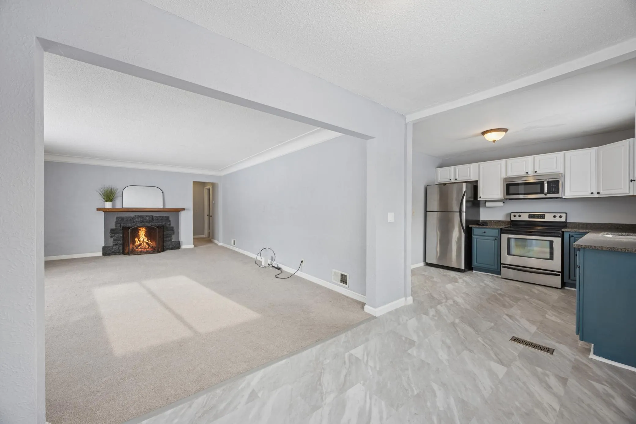 Beautiful home in a desirable Golden Valley location close to parks, lakes, trails, golf courses, and convenient commuting routes. The floor plan offers three bedrooms on the main level, including a primary suite with a private full bathroom. The open kitchen features granite countertops, stainless steel appliances, and an adjacent informal dining area. A spacious living room with a cozy fireplace provides the perfect gathering space. An additional updated full bathroom features ceramic tile finishes. The large lower level includes a separate entrance, a second living room with a fireplace, a flex room that could serve as a future fourth bedroom, plus unfinished space for storage, laundry, and utilities. The private fenced backyard is ideal for entertaining or relaxing. Seller installed solar panels, adding energy efficiency to the home. Quick closing possible – Welcome Home!