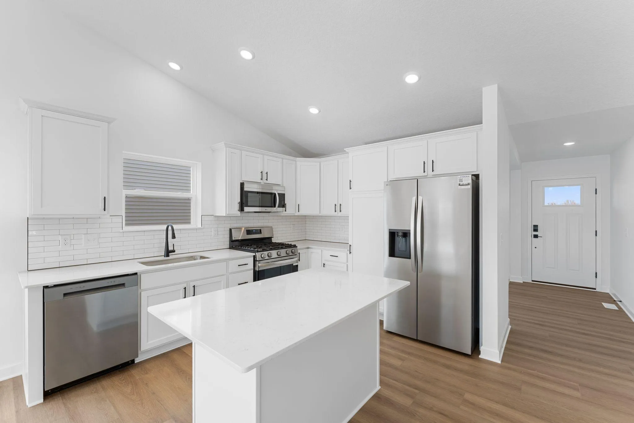 Step inside this impressive 2,280 square foot home and discover a modern open layout designed for memorable everyday living. Soaring vaulted ceilings create a grand first impression in the Great Room and dining area, while the sleek kitchen stands out with quartz countertops, a large center island and an upgraded stainless steel appliance package. The versatile flex room adapts easily to your unique lifestyle—think home office, playroom or formal dining. A short staircase leads to three inviting bedrooms, including the spacious owner’s suite with a private bathroom. Downstairs, the finished walkout basement expands your living options with a bright recreation room, a fourth bedroom and a full bath—perfect for guests or entertaining. The expansive 3-car garage provides ample space for vehicles and storage. Homes like this, blending thoughtful upgrades and abundant space, attract attention quickly—make your move before someone else does!
