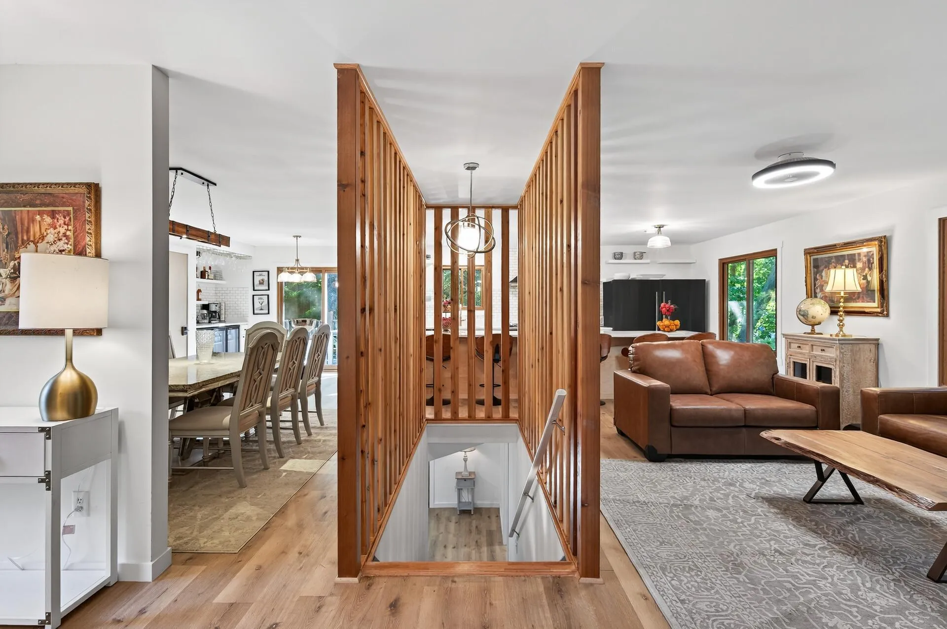 Nestled on a quiet cul-de-sac with a wooded backyard, this spacious 5BR/4BA home combines comfort and versatility. The main level boasts a private primary suite with a spa-like bath and an over-the-top walk-in closet, plus a second bedroom—perfect for guests or a home office. The fully remodeled kitchen impresses with a huge center island, double fridge, and wine bar, flowing seamlessly into a large maintenance-free deck. The walkout lower level adds three more bedrooms, a massive bonus room with backyard access, and a sauna. Recent updates include new low-maintenance siding and a brand-new roof. Perfect for multi-generational living, work-from-home needs, or entertaining. Just 1.5 blocks from Medicine Lake with trails, dining, and shopping nearby—this home is a true find for space, privacy, and flexibility. Furniture available for purchase.