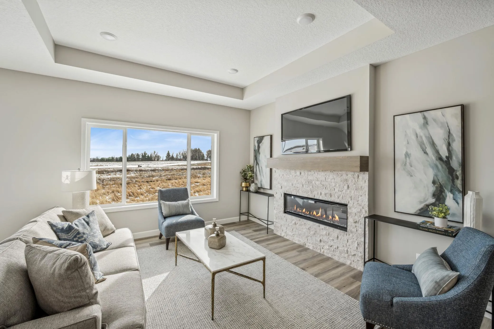 UNDER CORUCTION, COMPLETION DATE OF MARCH! Madison rambler floor plan on a WO lot in our Meadowbrook community. stone fireplace, upgraded kitchen with quartz countertops throughout, LVP in living room, and iron railings, finished lower level, Luxury suite with an over sized shower, primary bedroom vault w/ ceiling fan, along with a 3 car garage workshop. Full yard sod/irrigation! Pictures, photographs, colors, features, & sizes are for illustration purposes only and may vary from the home that is built. Sod to be installed at a later date.