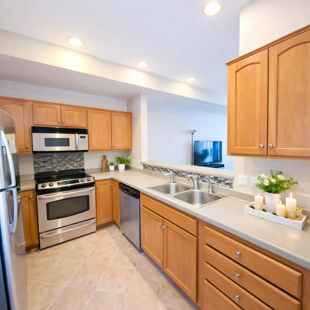 kitchen layout. Enjoy peaceful views from the private deck overlooking the pond, perfect for relaxing or