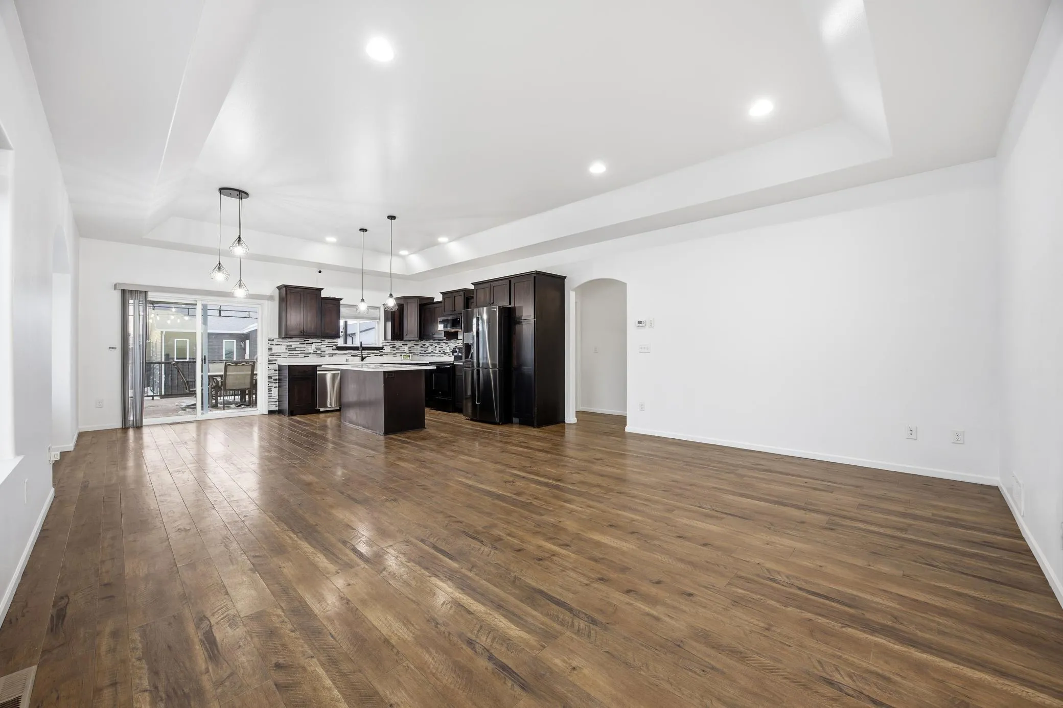 Exterior highlights include a maintenance-free deck, patio, firepit, turf area designed to protect grass from pool use, sandbox and kids’ play space under the deck. Washer, dryer, patio furniture, and awning included. Walkway to parks and close proximity to schools, golf course, and area amenities.