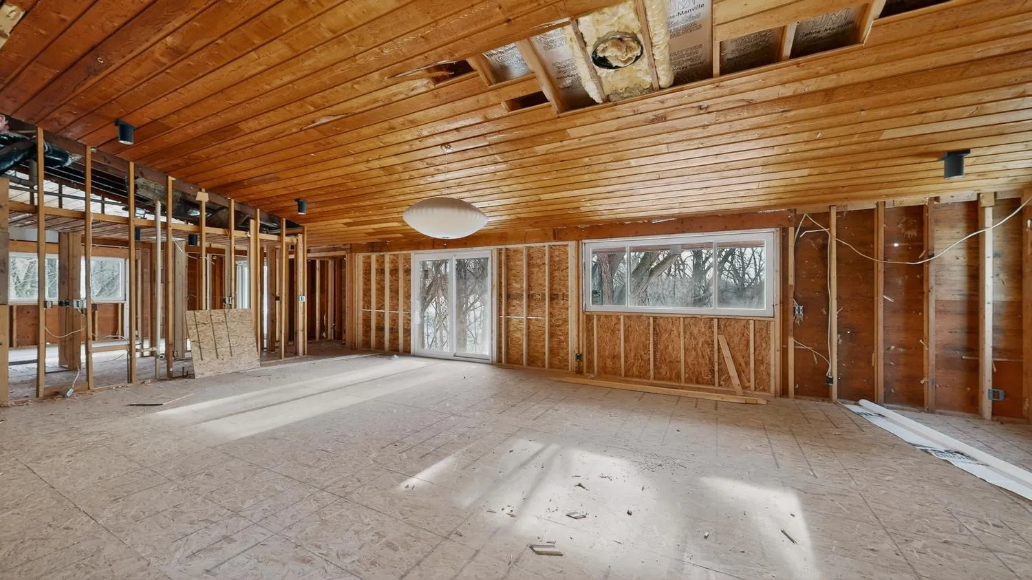 The layout offers potential for four bedrooms and three bath areas, anchored by a distinctive two-sided fireplace serving both the living and dining spaces. A generous primary suite provides a comfortable retreat. A future unique office or creative studio is highlighted by a spiral staircase and built-in workspace, ideal for artistic pursuits or working from home. The lower level adds a future family room and three additional bedrooms, offering flexible living space. This property stands out as a distinctive home within an equally special neighborhood. For sale as-is—make it your own.