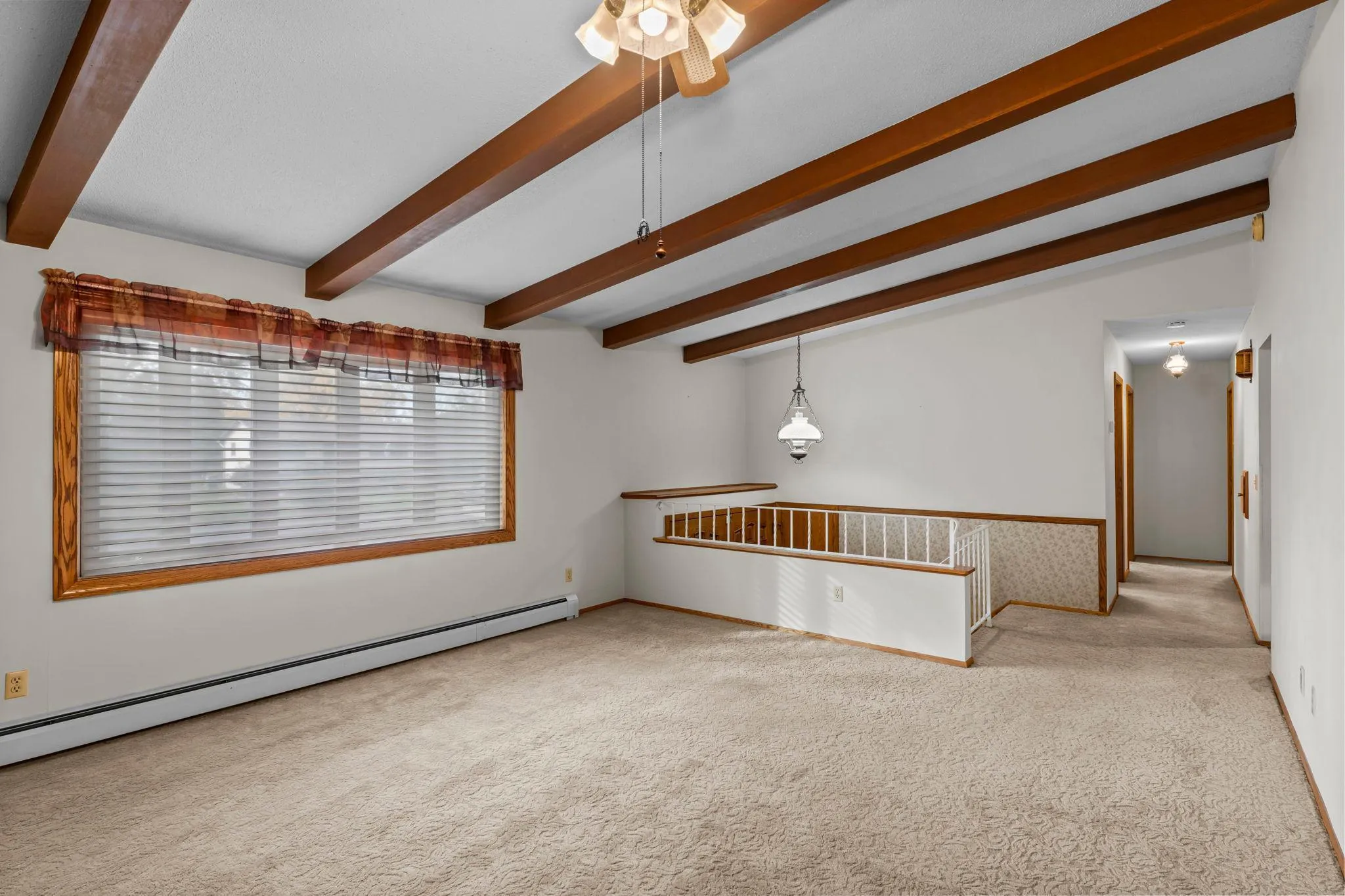 One owner 4-bedroom, 2-bath home on a huge corner lot next to Westwood intermediate and middle school. A creek borders the back of the lot. You will love the large rooms of this home! You can relax by the gas fireplace in the living room on those cold winter nights. The main floor bath walks through to the primary bedroom. Hardwood floors are in the upper bedrooms and a 3-season porch is a great spot to enjoy the summer nights. The Insulated and heated garage is a great spot to work in the winter and walks down to the family room. Each level has a separate thermostat. The boiler, water heater, and electric have all be updated. Convenient location with quick access to Hwy 10, Hwy 65, and I-35W.