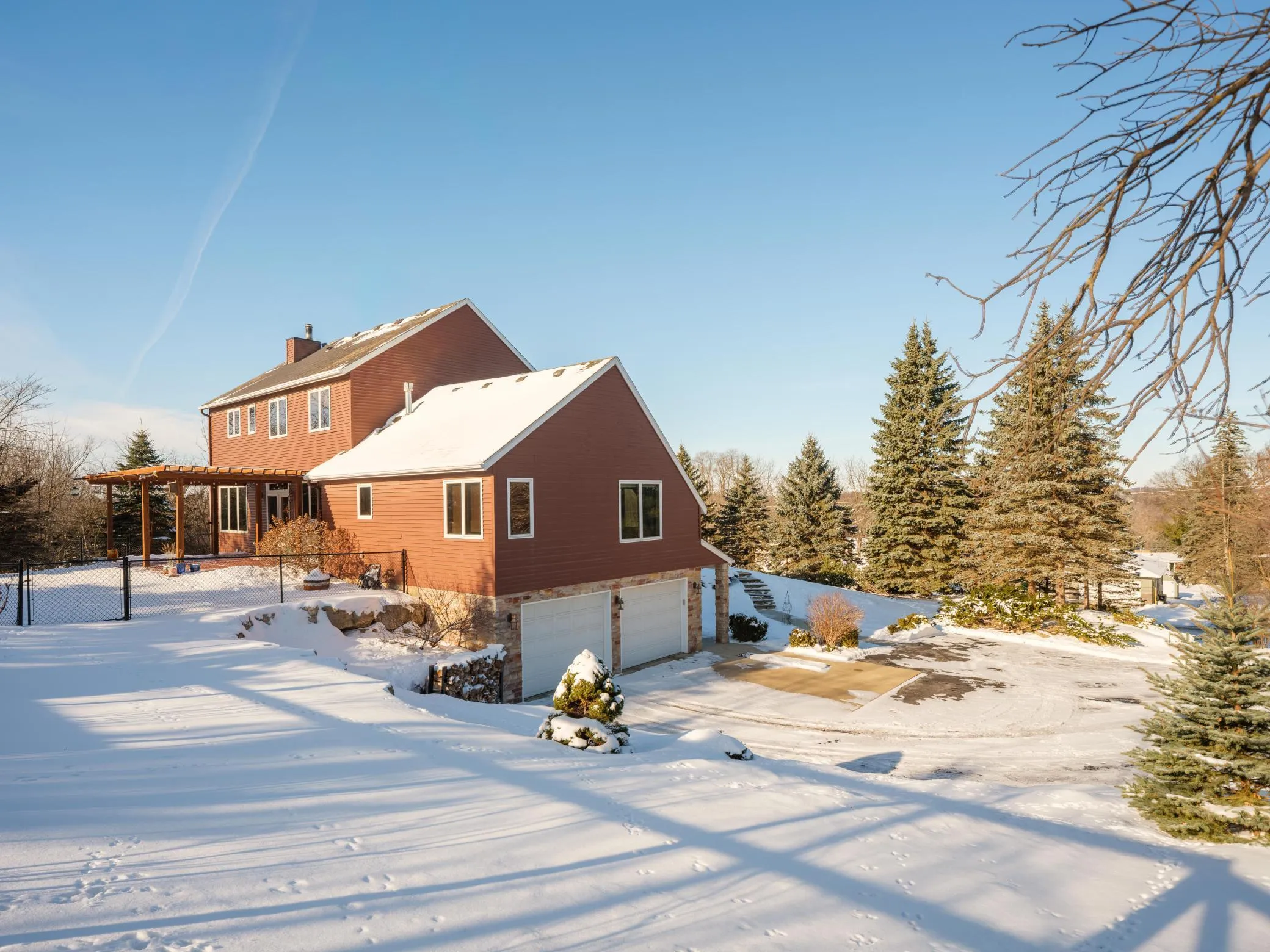 Tucked away on a quiet street, this custom-built home sits on a private, tree-lined lot offering a peaceful and secluded setting. A landscaped formal entry with a curved walkway welcomes you to the home, while the well-positioned outdoor space is surrounded by mature trees and offers excellent potential for outdoor enjoyment. Spend summer evenings on the expansive patio—perfect for entertaining or unwinding—while the fully fenced yard is ready for your four-legged family members. Inside, the home is designed for everyday comfort with open living spaces, abundant windows, and a layout that flows seamlessly between rooms. Natural light fills the interior while capturing one-of-a-kind views of the city, including stunning city views from the primary suite. Flexible living areas add practicality for daily living and entertaining alike. A heated tuck-under garage with dedicated workshop space offers year-round functionality for storage, hobbies, or projects. Located just minutes from town with easy access to a well-developed trail system, this home delivers a thoughtful balance of comfort, functionality, and convenience.