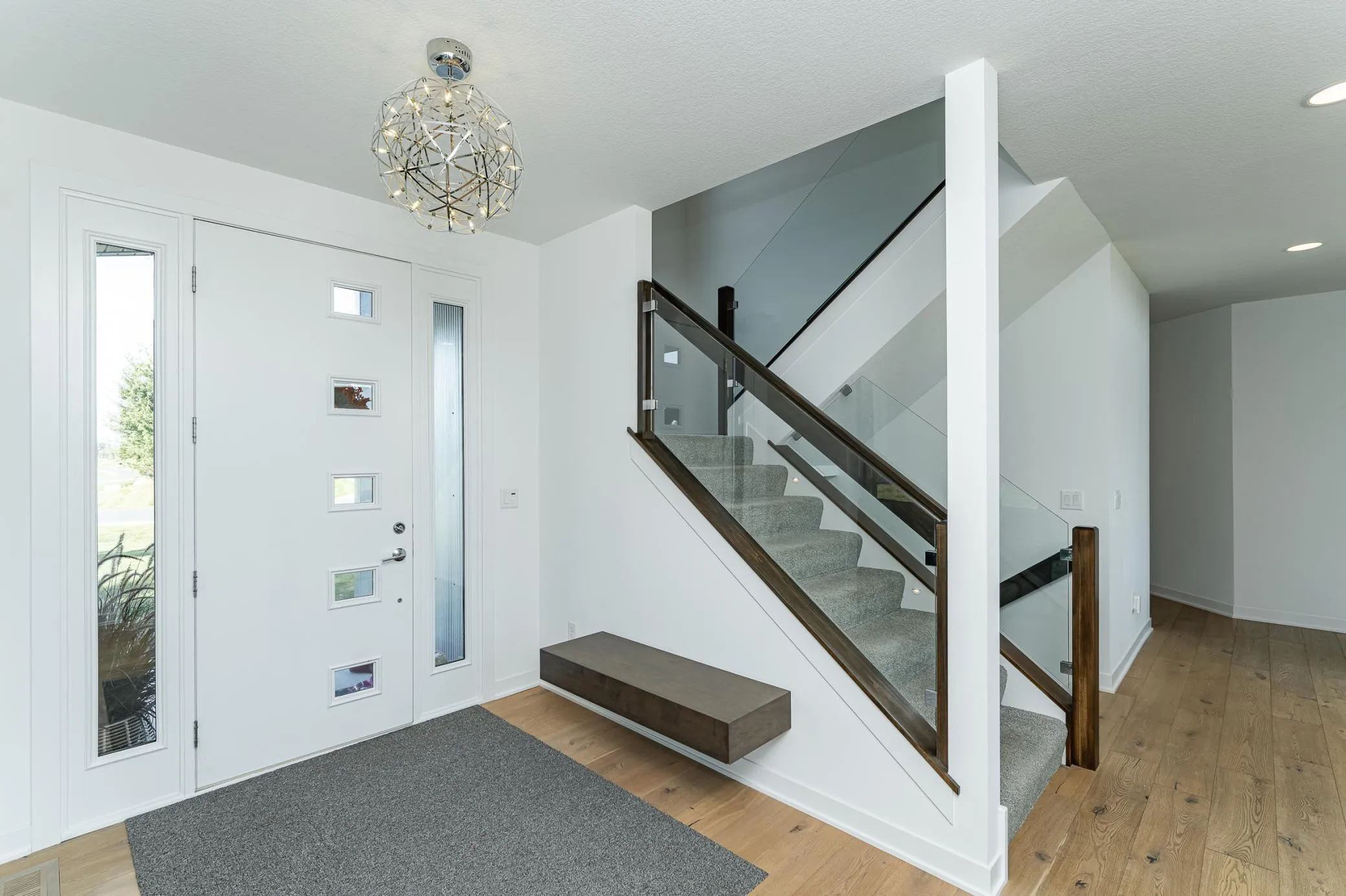 Welcome to this stunning modern home in the highly sought-after Mayo Woodlands neighborhood! Designed with clean lines, abundant natural light, and luxurious finishes, this 5-bedroom, 4-bathroom residence offers the perfect blend of style and functionality. The main floor features a spacious primary suite with his-and-hers closets, spa-inspired bathroom with soaking tub and heated towel rack, and conveniently located laundry. You’ll also find a private office with custom built-ins, gourmet kitchen with a stylish and functional pantry, dining area, vaulted living room with expansive windows, and a well-designed mudroom. Upstairs, three generously sized bedrooms share a full bath, along with a second laundry room for added convenience. The recently completed lower level is an entertainer’s dream featuring a lovely full kitchen, state-of-the-art exercise room with backlit mirrors, bathroom with faux skylight, large great room perfect for game or movie nights, a unique multi-purpose room accessible through a hidden door, an additional bedroom, and ample storage. Complete with a 3-car garage and positioned on a beautiful lot, this home is loaded with amenities and offers the best of modern living in one of Rochester’s most desirable neighborhoods. Close to Mayo Clinic, schools, retail, trails and restaurants.
