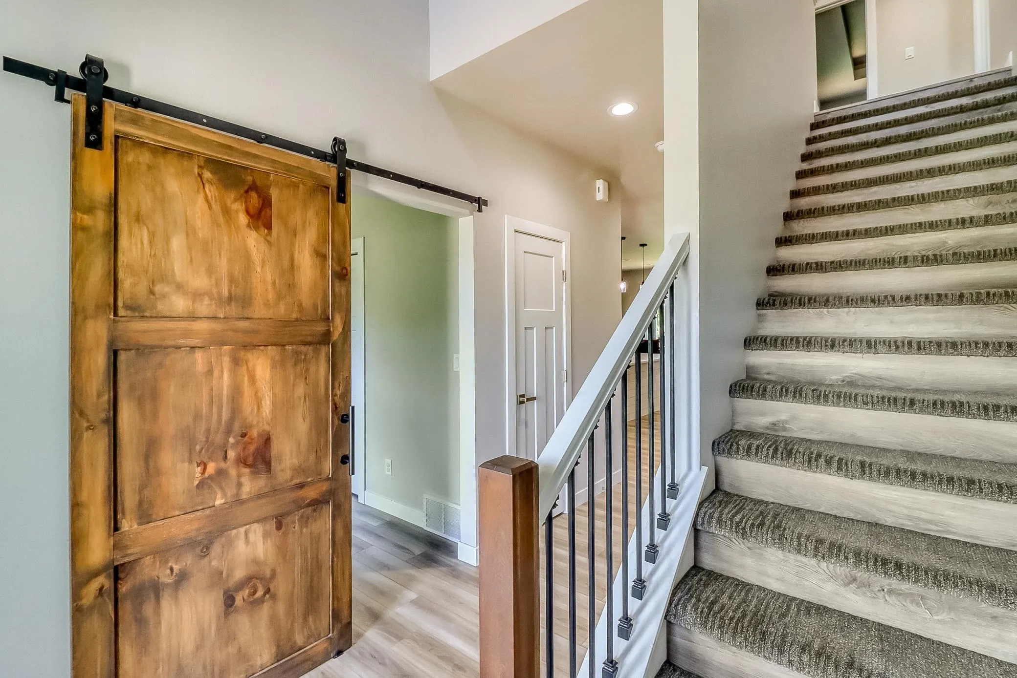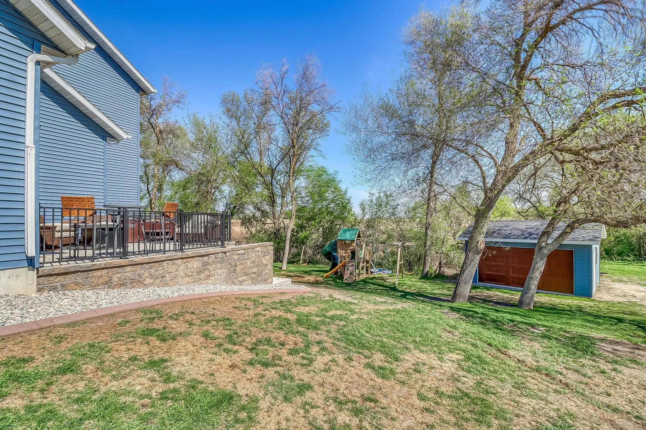 Rare, in-town newer built home in country setting right off Hwy 10 for easy access to amenities, F-M and Lakes Country. This very well maintained 2 story sits in a quiet cul-de-sac with no backyard neighbors! Light and bright main level with 9’ ceilings has beautiful kitchen with quartz, large island, tiled backsplash, gorgeous cabinetry, walk-in pantry, stainless steel appliances and gas range with custom vent hood. Kitchen/dining opens to living room that has built-ins, shelving and gas fireplace with mantel and shiplap accents. Main floor mudroom with drop zone and locker system plus closet, half bath, attached garage access and office/den/flex/bedroom with closet and sliding barn door. Two story foyer leads to three bedrooms up that includes primary bedroom suite with private bath that has tiled shower with glass door, walk-in customized closet system and double sinks. Two additional bedrooms, full bath and laundry with cabinetry and folding counter upstairs. Finished basement has cozy family room with wood and stone accents, electric fireplace with mantel, dry bar with cabinetry, eat-up peninsula and mini refrigerator. Additional bedroom with large walk-in closet, full bath with jetted soaking tub, storage room and upgraded mechanicals that include gas forced air and central air with three individual zones, owned water softener and air-exchange system. Dream garage set-up with three stall attached garage that has storage, gas-powered heat, cooling system and floor drain. Additional 16’ x 18’ matching “shed” with 14’ insulated overhead door, service door, window and concrete flooring. Gorgeous patio with retaining wall overlooks over 13,000+ SF private lot with trees and room to roam. More features include underground dog fence, deck ledger board available for your future customization, negotiable hot tub and curbed edging with landscaping. Very clean and in like-new condition. Move in ready with flexible closing options!