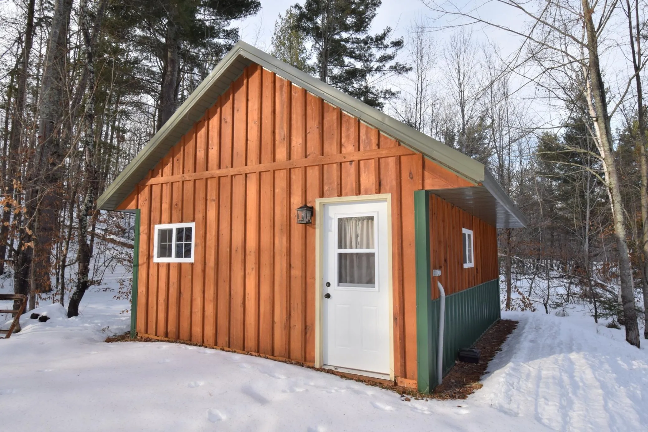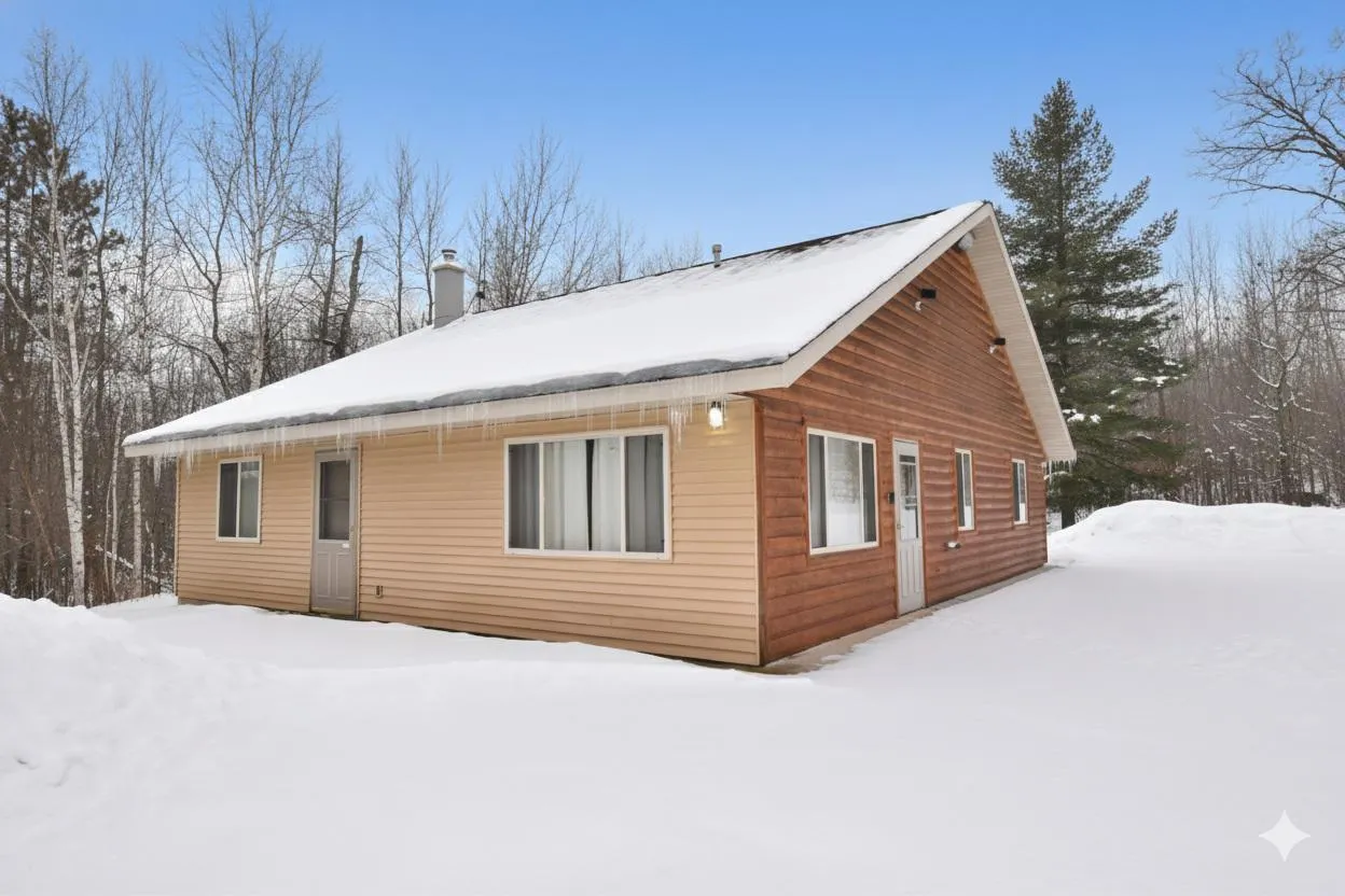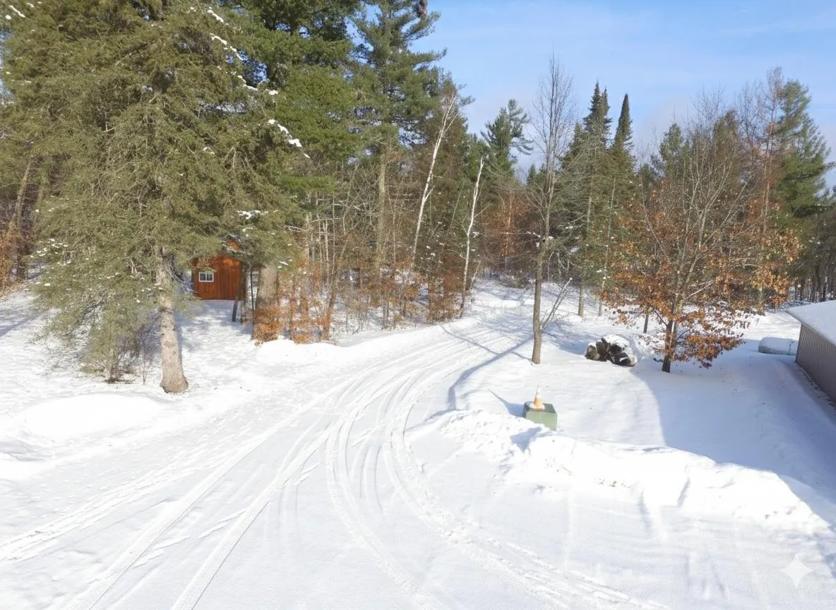 Tucked away in majestic pine woods, this private, well-built and meticulously maintained year-round home, or cabin for weekenders, offers the perfect escape from the work week. A winding private drive leads to a rolling landscape with trails woven throughout—your own peaceful retreat in nature. Charming 2-BR, 1-BA home features one-level living with a spacious great room, convenient laundry, and large storage closets. Rustic character shines through w/beautiful vaulted pine ceilings, ceramic tile floors, & an inviting eat-in kitchen that opens to a generous living area. A newer wood stove provides cozy supplemental heat for winter nights, central air, LP forced air, and a whole-house Generac generator ensure year-round comfort and reliability. Additional features include a drilled well and conventional septic. The “man cave” setup is truly exceptional: a massive 54×64 fully insulated steel garage completed w/spray foam insulation, RV doors, LP gas heater, wood stove, car lift, hoist, air compressor, shelving, and numerous extras. An added 18×64 attached enclosed lean-to with a garage door offers even more versatile space. Guests will love the adorable 20×16 cabin, finished entirely in pine and full of charm. Outdoor enthusiasts will appreciate the personal playground with snowmobile and UTV trails, nearby county land for hunting, and the St. Croix River just down the road. Conveniently located just north of Danbury and the casino—this property is truly a rare gem.