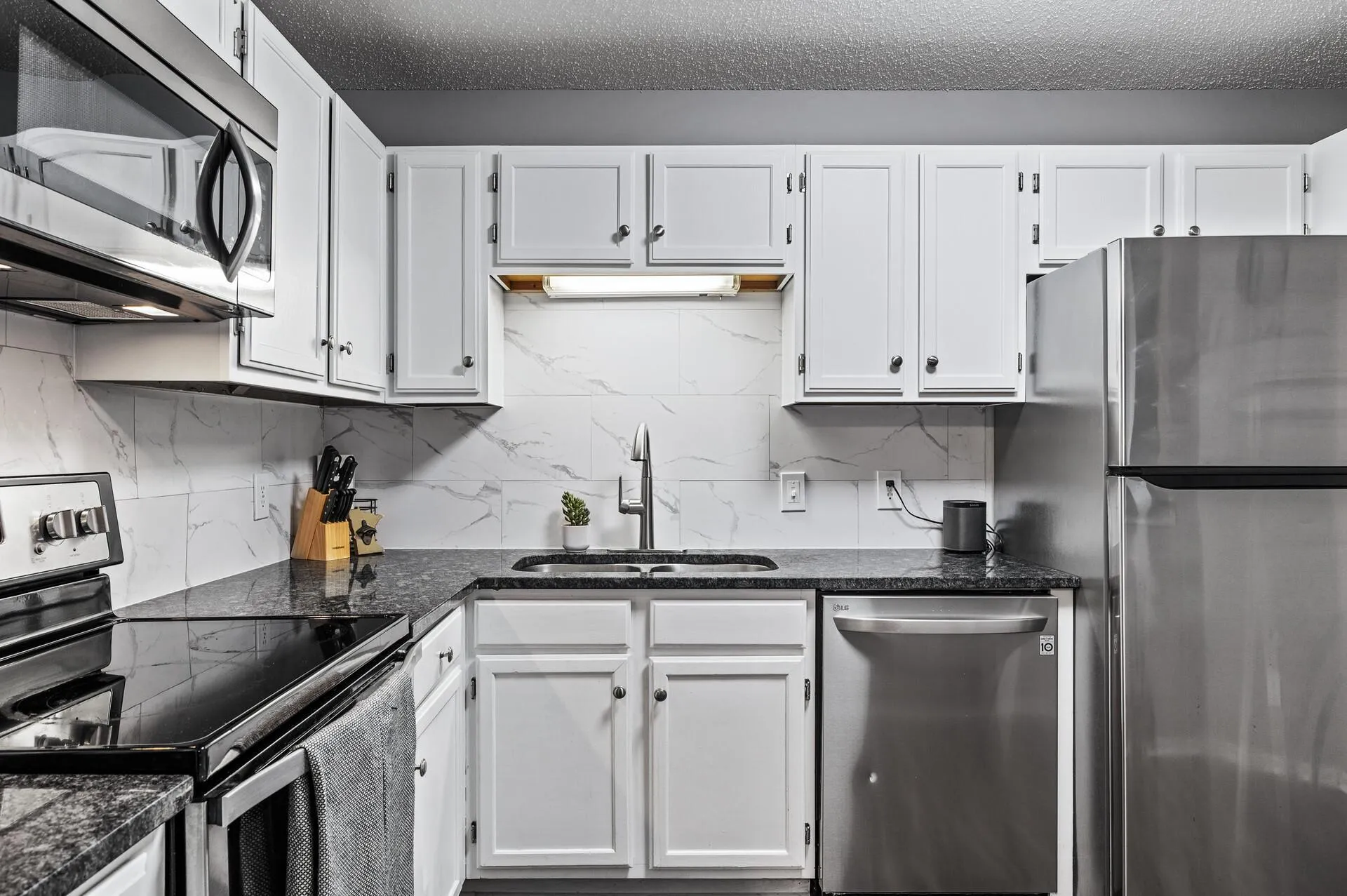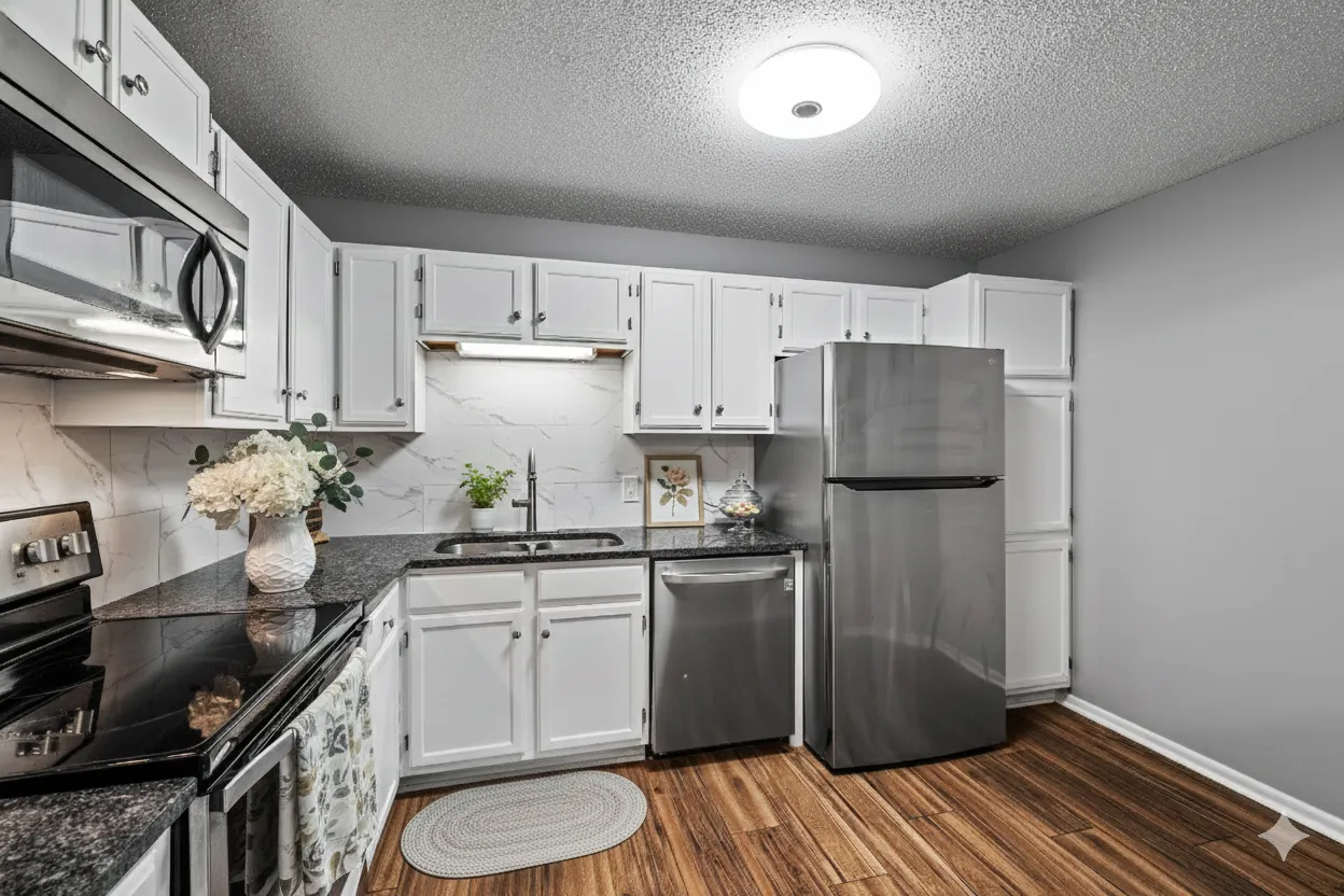 Beautifully updated corner-unit home offering an abundance of natural light through large windows. This thoughtfully remodeled residence featuresluxury plank flooring, stainless steel appliances, granite countertops, modern lighting, and a stylish backsplash. The spacious main bedroom includestwo large closets and a private 3/4 bathroom. A second bedroom, ideal for use as a guest room, den, or office also includes ample closet space. The homeincludes a full-size washer and dryer, a second full bath with a skylight, and a well-appointed kitchen with a convenient pass-through to the dining area.Enjoy the landscaped grounds with access to a shared gazebo and gas grill. Heated shared parking garage includes an assigned parking space, storagearea, and car wash. Monthly . Conveniently located near shopping and with easy access to I-494, this home offers comfort, convenience, and style