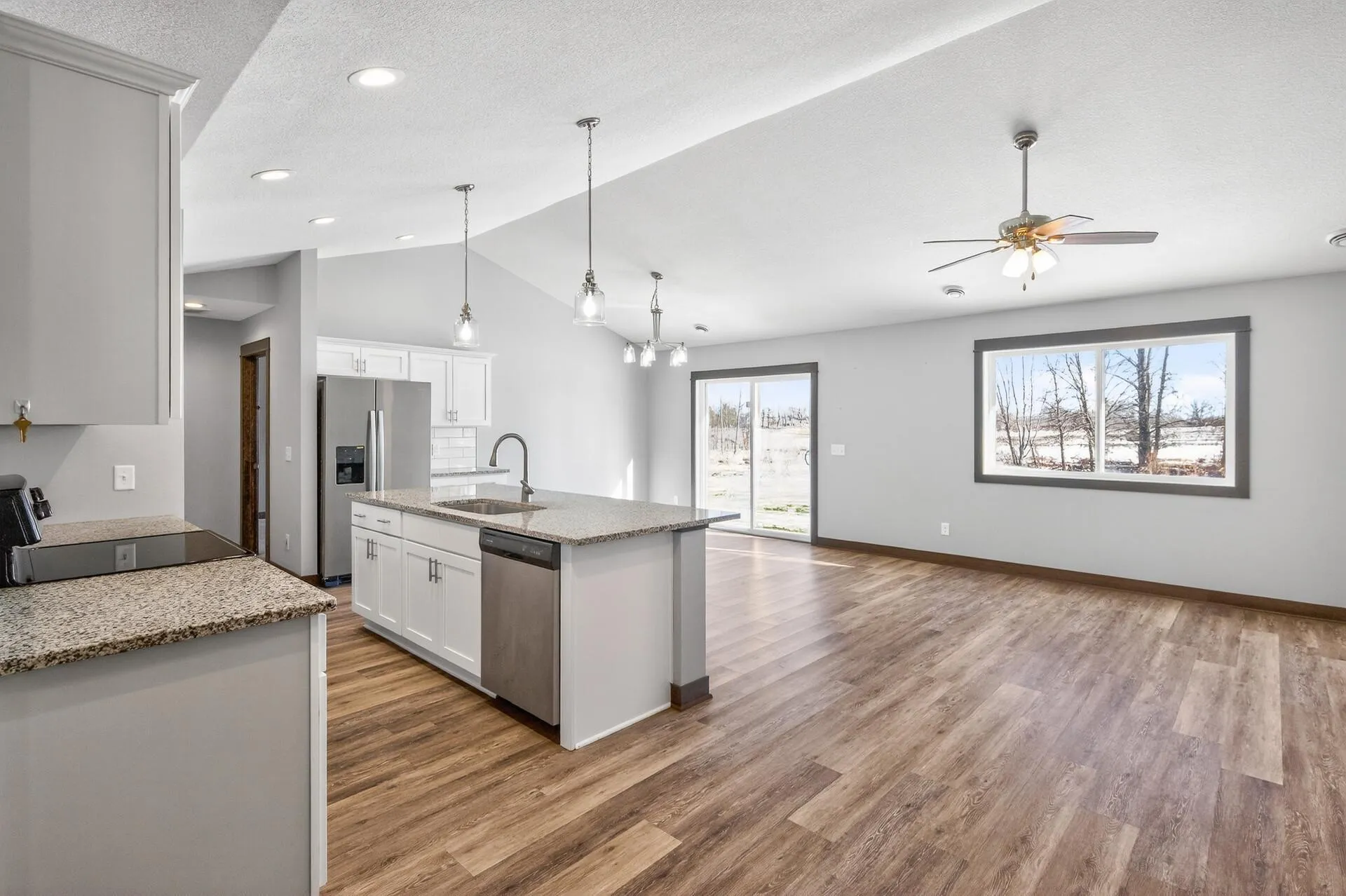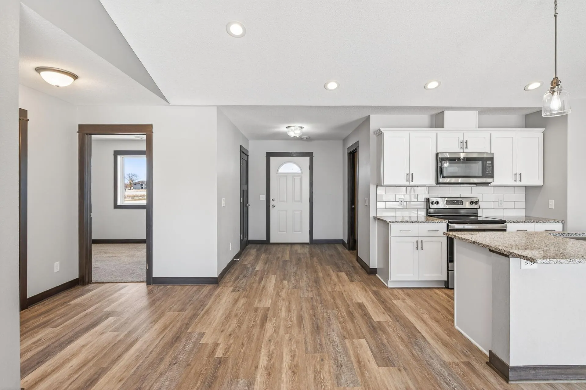 This fantastic rambler features an attached 3 car garage and a bright and open floor plan for the living room, dining and kitchen. Finishes include granite countertops, stainless steel appliances, tile backsplash in kitchen and private master suite with walk in shower& dual sink – all on a spacious and quiet cul de sac lot. You’ll love this home – make it yours today!