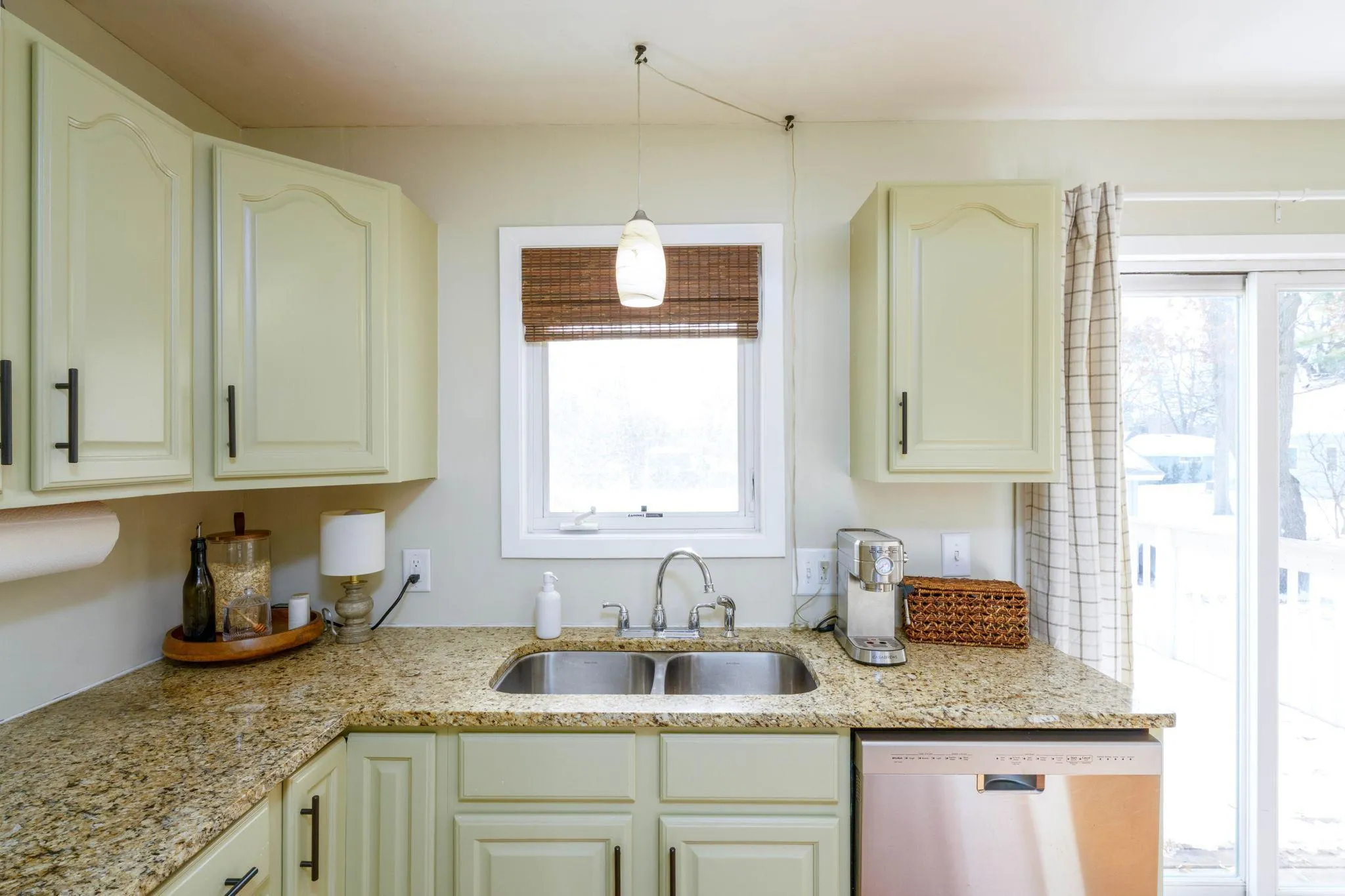 room is immense & has plenty of sunlight throughout the day. The kitchen with newly painted
