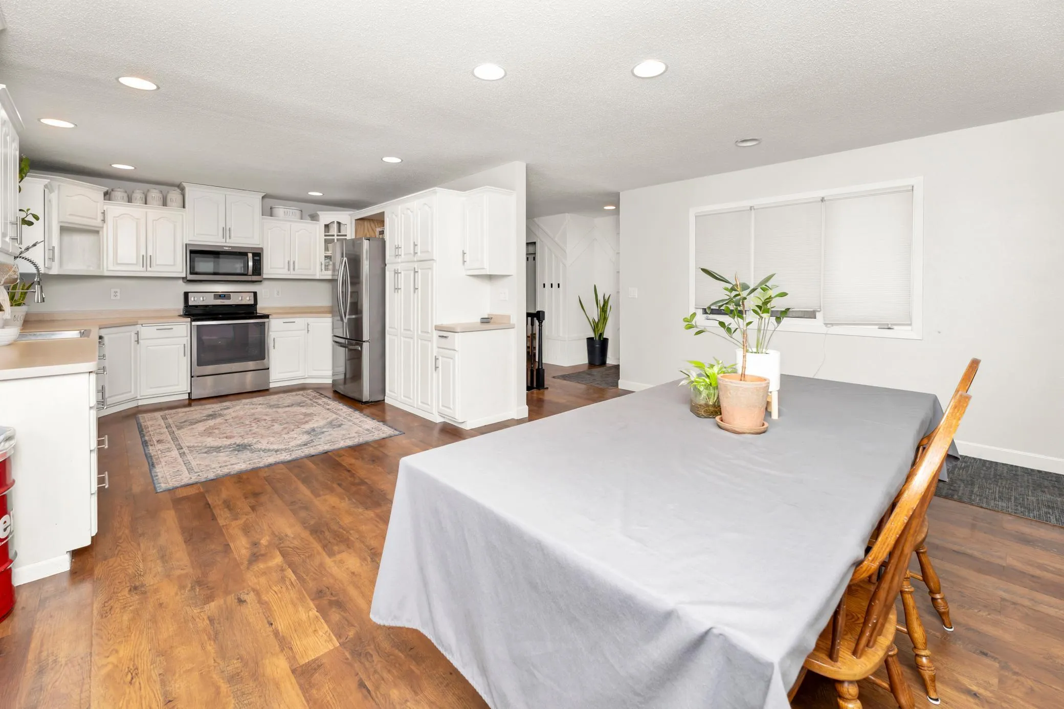 No backyard neighbors and No Specials! Spacious rambler with 4BR,3BA and an insulted, heated 2 stall garage. The long and wide driveway allows for extra off street parking. This open kitchen/dining area, overlooks that back yard and has extra cabinets, newer appliances, updated flooring and room for a sizeable farmhouse table. All new flooring and lighting throughout the house with a fireplace in the living and family rooms. Three bedrooms on main and a larger primary suite w/WIC & private BA. The basement has the laundry, 4th bedroom, bathroom, potential for future 5th BR, plenty of storage and space for a hobby room.