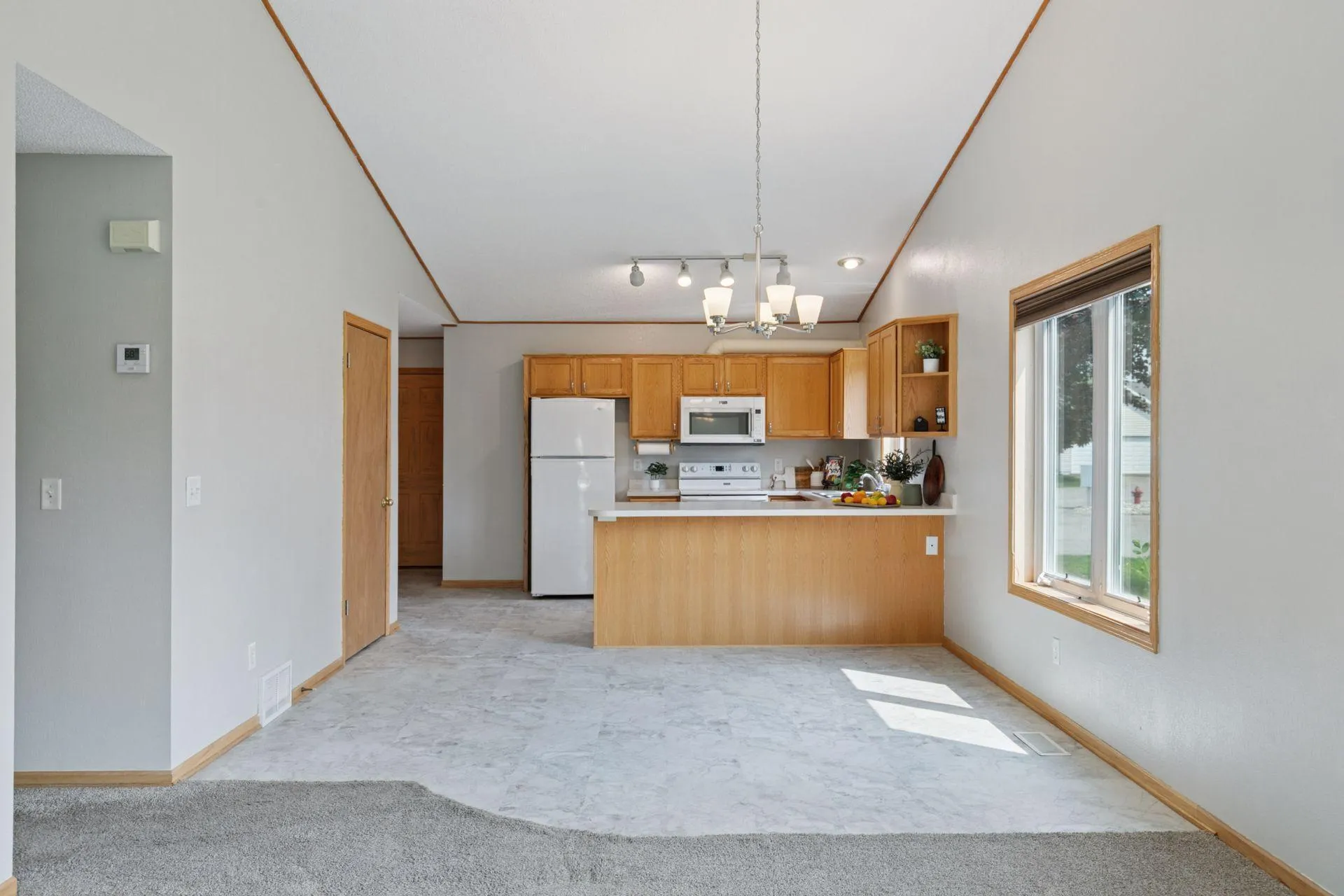 Welcome to this immaculate and spacious end unit, featuring stunning panoramic views of nature and a tranquil pond. Sitting in a private cul-de-sac, this rambler-style home boasts an open floor plan designed for main-level living w/2 bedrooms, ¾ bath, laundry, and future deck. Complimented by a generously sized full walkout lower level that leads to a fantastic BBQ patio, beautifully landscaped backyard space and serene walking paths. Enjoy entertaining at the wet bar, and take advantage of the expansive 3rd bedroom w/an attached full bath in the lower level. Relax on the inviting back porch, a perfect spot to unwind. The property is adorned with a striking rock wall and flourishing perennial garden. This home offers great storage throughout. Freshly painted – ceiling and walls, and a stunning stylish new kitchen/dining flooring. Don’t miss this exceptional opportunity that is move-in ready.