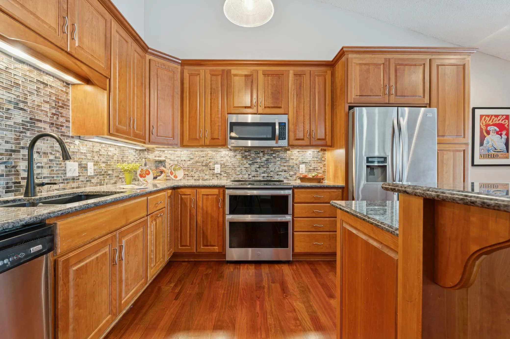 Beautiful turnkey townhome loaded with recent premium updates and flooded with natural light. Classic cherry woodwork, granite, beautiful updated baths, vaulted ceilings, newer stainless-steel appliances, new carpeting, and much more. Huge primary bedroom with additional flex area. Walkout lower level can easily be converted to a third bedroom and features a beautifully updated ¾ Bath and dry bar area. Lots of green space surrounds this home and the south facing deck overlooks the pool area and beautiful grounds. Located in the heart of Eden Prairie. Close to EVERYTHING: shopping, restaurants, parks, and the Southwest Station with access to the new light rail system making your commute a breeze. Easy access to the airport and the 494 making it a breeze to get anywhere.