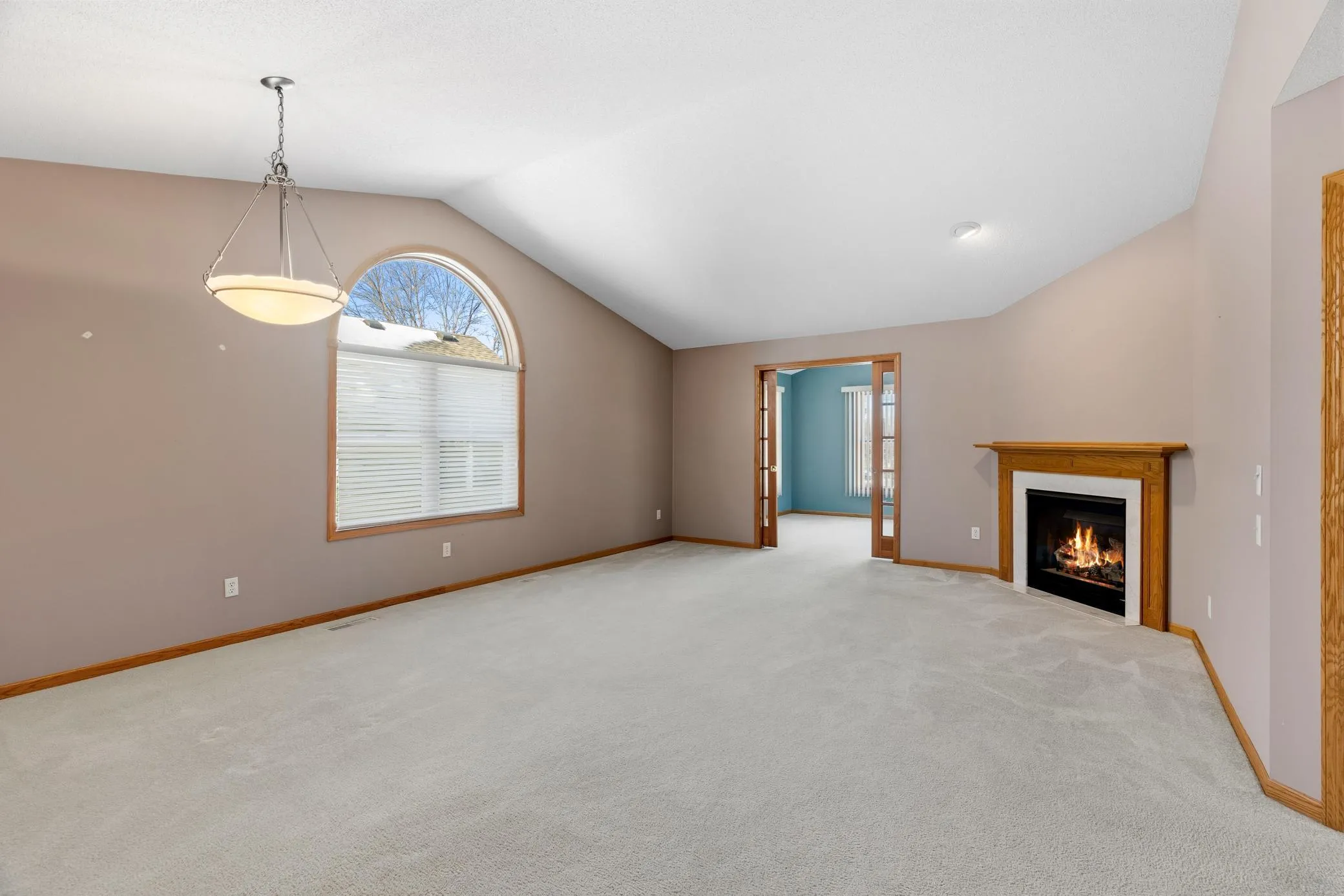 Enjoy the ease of main-level living situated on a nice lot located in a prime area close to grocery and convenience stores. The welcoming foyer opens to a bright and open layout featuring vaulted ceilings in the family room, dining area, and sunroom. The family room is highlighted by a Heat & Glo fireplace, creating a warm and inviting space. A spacious sunroom adjoins the family room and opens to a concrete patio, perfect for relaxing or entertaining. The primary suite offers a walk-in closet, tiled floor and shower, soaking tub, and a double vanity. The second bedroom features French doors, making this room ideal for guests or a home office. Additional features include Pella casement windows, tile flooring in the foyer, hallway, and bathrooms. Three solar tubes providing additional natural light in the foyer, laundry room, and primary bedroom. Furnace, air conditioning, washing machine (2025), roof and siding (2024), water heater (2022). A comfortable and functional home offering natural lighting throughout.