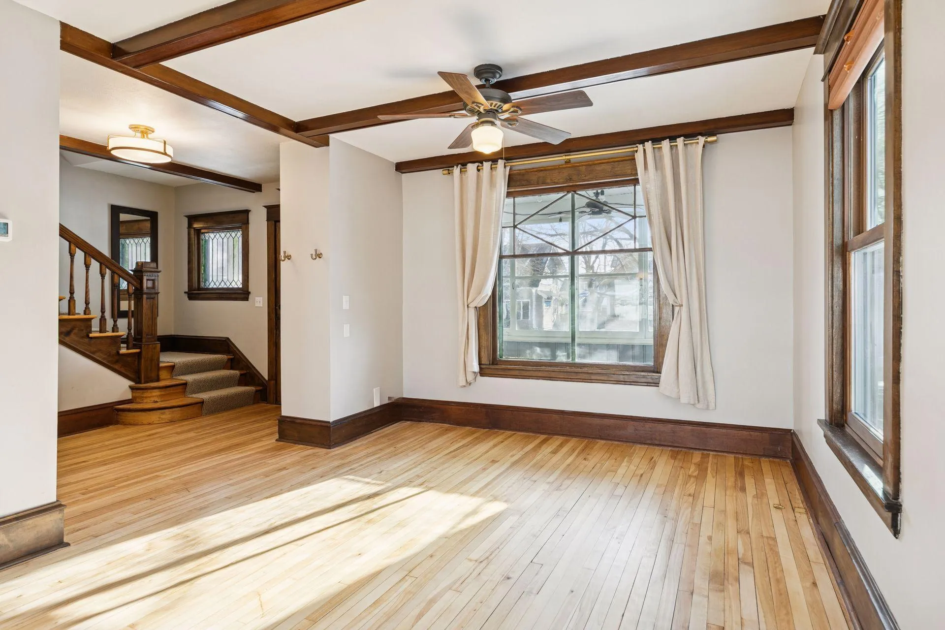 Discover the vintage and modern beauty of this 1902 historic home in the coveted Crocus/Summit Hill neighborhood. A thoughtful and well designed main floor renovation in 2022 made efficient use of the space offering better flow and modern upgrades – all while retaining the warmth and original character. The kitchen was transformed into a space that feels timeless and appropriate…it seamlessly blends the love for modern high end finishes with the love for simple lines and classic woodwork. The kitchen features Calacatta quartz counters with marble backsplash, custom built & designed cabinetry with a floor to ceiling pantry, breakfast bar, champagne bronze fixtures, and stainless appliances. As part of the renovation, the rear footprint was expanded to add a mudroom and powder room with walkout. Enjoy an elegant shared living and dining space off the kitchen featuring a beamed ceiling and an abundance of natural light. Move through the spacious foyer highlighted by an open staircase to the second story. The second story holds two generous sized bedrooms – both offering large walk-in closets with organizers, plus a full bath, and convenient laundry room. A unique primary suite spans the entire 3rd story with dual baths and a walk-thru shower. Additional living and entertaining space can be found in the finished basement family room – also doubles as the 4th bedroom with an egress window and built-in Murphy bed! The exterior was also fully renovated in 2019 with new James Hardie siding, trim & fascia, gutters, doors, insulation and a patio. You’ll love the welcoming front porch, original leaded glass windows, hardwood floors main & up, vintage architecture and high ceilings… plus a cozy and private backyard, 2 car garage with solar panels, 4 unit mini split with heat pump & AC, hot water in-floor radiant heat, gas water heater, and all above ground windows have been updated (minus stained glass & large window facing porch). Ultra convenient urban location within walking distance to everything you need – a mix on entertainment and dining options on Grand Ave, stroll down the tree lined sidewalks 2 blocks away to the new Linwood Community Recreation Center with a park and playground, Summit Community Gardens, schools, grocery, and bus line. You will appreciate all the desirable characteristics, strong sense of community, proximity to schools and parks, and the timeless appeal. LIVE & PLAY in this gem of a neighborhood!