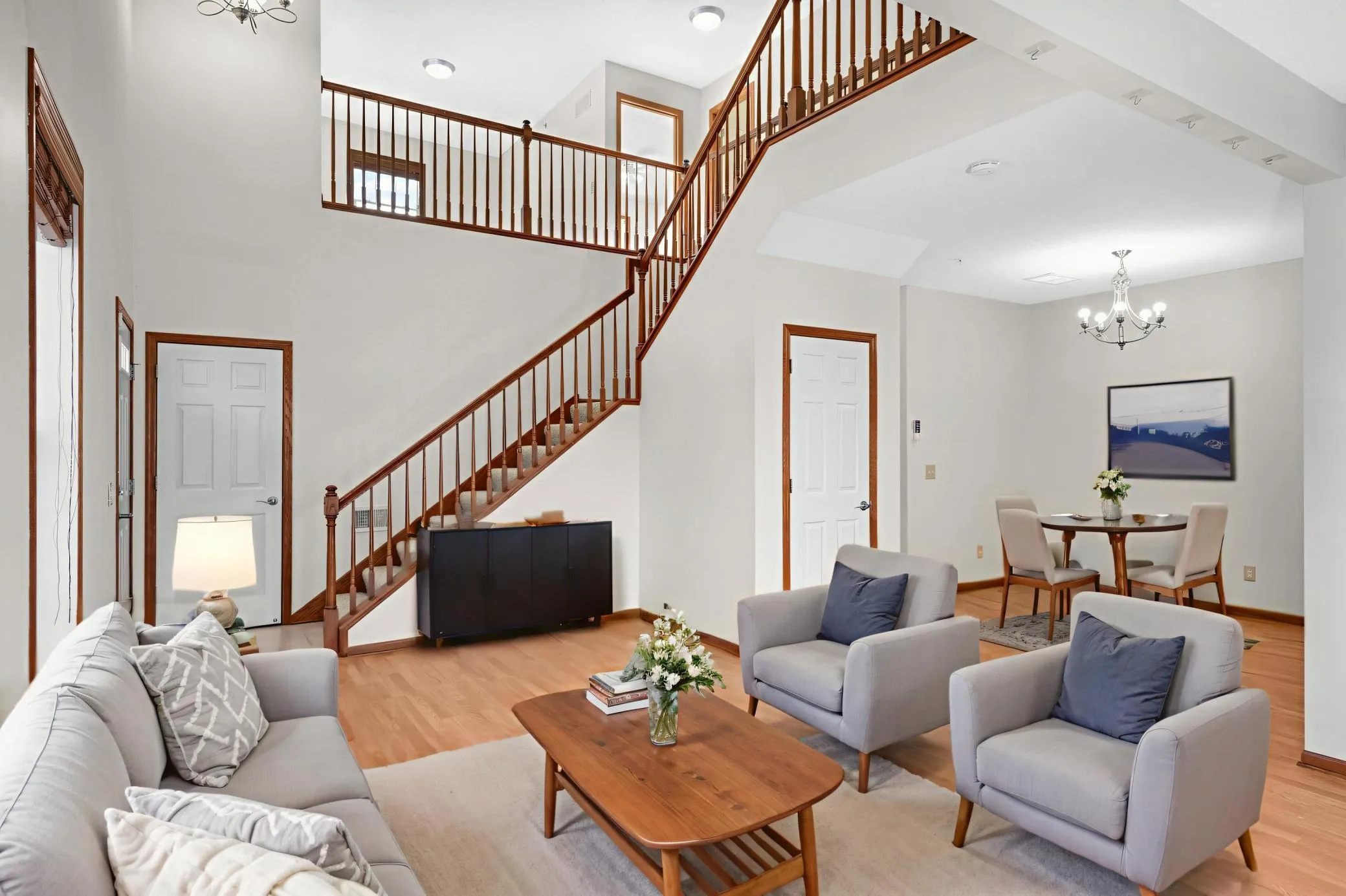 Welcome to 7352 Unity Ln—an end-unit townhome perfectly positioned beside the creek and just steps from the green space, offering peaceful views and a connection to nature right outside your door. Inside, the open main-level floor plan is ideal for everyday living and entertaining, while the spacious upper-level loft provides flexible space for a second living area, home office, or playroom. The primary bedroom features a private bath with double vanity and a large walk-in closet. Brand-new carpet throughout the upper level (installed early 2026) adds a fresh finish. Enjoy the rare combination of scenic outdoor surroundings and generous interior space—suburban living at its best.