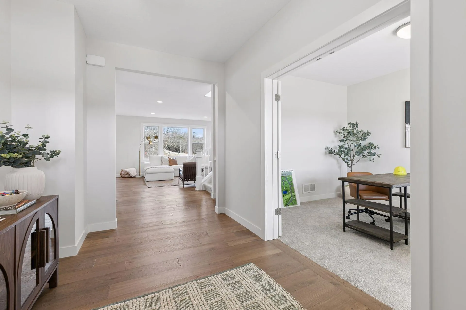 The finished lower level expands the home’s versatility, offering a large recreation room perfect for gatherings, movie nights, or casual entertaining. A finished bedroom and beautifully appointed ¾ bathroom with tiled floors and walls create an inviting space for guests. The lower-level dry bar, complete with stained cabinetry, quartz countertops, and a beverage refrigerator, enhances the home’s entertainment appeal. Additional highlights include a four-stall garage, premium flooring and tile selections, lawn irrigation, and thoughtfully designed outdoor spaces. The Watkins model exemplifies Country Joe Homes’ commitment to quality, design, and livability, offering a Parade of Homes–caliber residence in one of Lakeville’s premier communities.