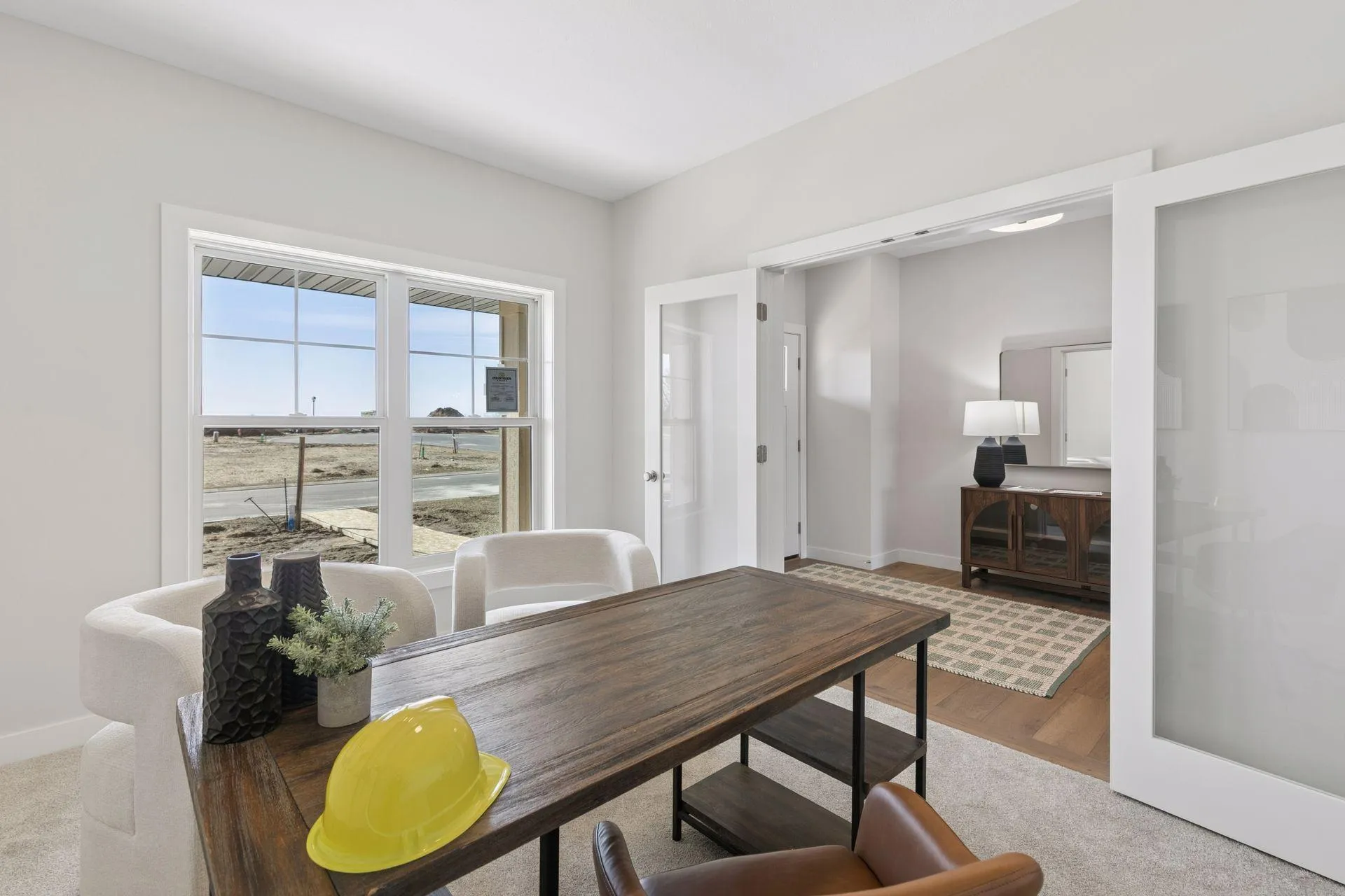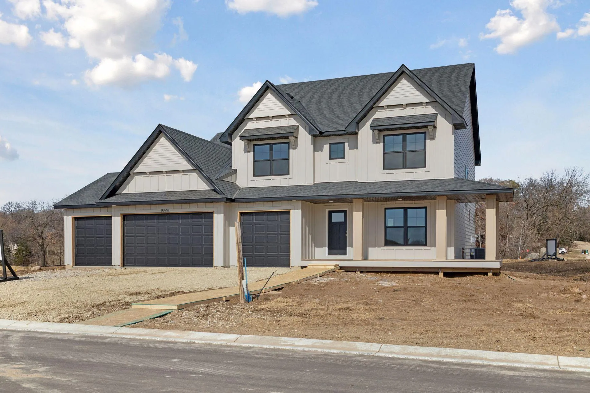 Welcome to the Watkins model by award-winning Country Joe Homes, the featured 2026 Spring Parade of Homes residence located in the highly sought-after Preserve of Lakeville community. Situated at 18505 Jabiru Path, this professionally designed model home showcases exceptional craftsmanship, thoughtful architecture, and elevated finishes throughout. Curb appeal is immediate with the home’s charming cedar-wrapped front porch, and professionally curated model home landscaping. A future finished concrete patio extends the living space outdoors, offering the perfect setting for entertaining or relaxing evenings at home.