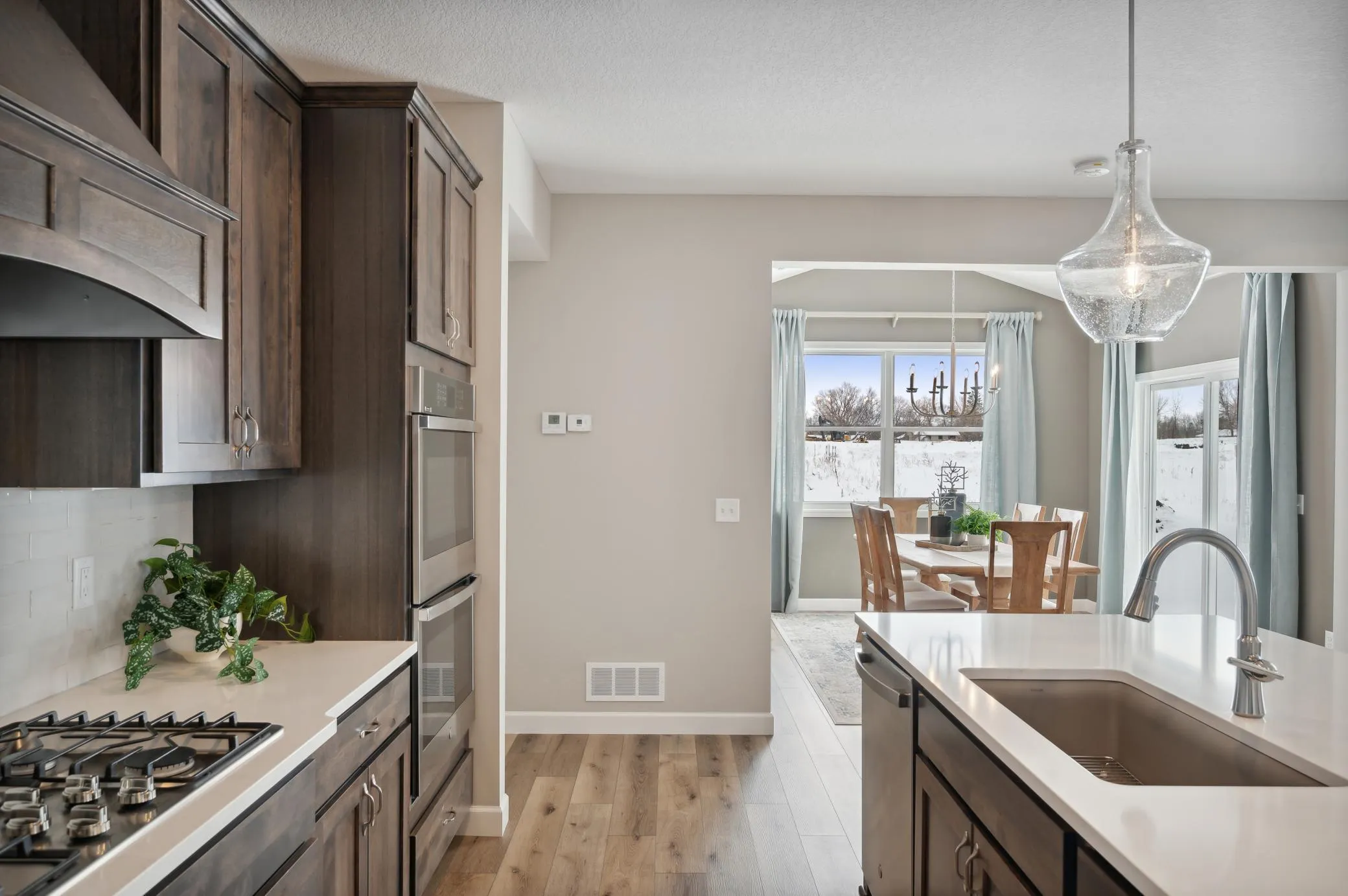 STUNNING WATERFORD MODEL HOME NOW FOR SALE! Move in NOW! Come experience the small-town charm of Hanover, MN in this incredible 3-car garage slab on grade Waterford home that is fully loaded with luxurious upgrades! These include: *IN-FLOOR RADIANT HEAT THROUGHOUT HOME*; Gourmet Kitchen with double wall ovens, custom wood hood, and expanded fully trimmed island with wing walls; Custom closet shelving in Primary Suite Walk-in Closet and Pantry; Gas fireplace with stone surround; Vaulted coffered ceiling in Living Room, step vault ceiling in Primary Bedroom, and pitch vault ceilings in Office and Dining; Built-in media cabinets in Living Room and Buffet Cabinets in Dining; Luxury Primary Bathroom with oversized tiled shower (features seamless glass door, tiled bench seat, and shampoo niche); Oversized three-car FULLY INSULTATED AND HEATED garage with bonus 20’x10′ bumped back workshop; much more! This one has it ALL! Step outside to the 12’x12′ concrete patio, where NO COMMUNITY HOA (fences, sheds, firepits, etc. all allowed) means you are free to enjoy your space however you please. This stunning home is a short walk from beautiful parks and the popular Hanover eateries that everyone loves. Don’t miss out on this 1-of-1 opportunity to live in a peaceful, close-knit community with all the space and amenities you’ve been looking for – schedule your visit today!