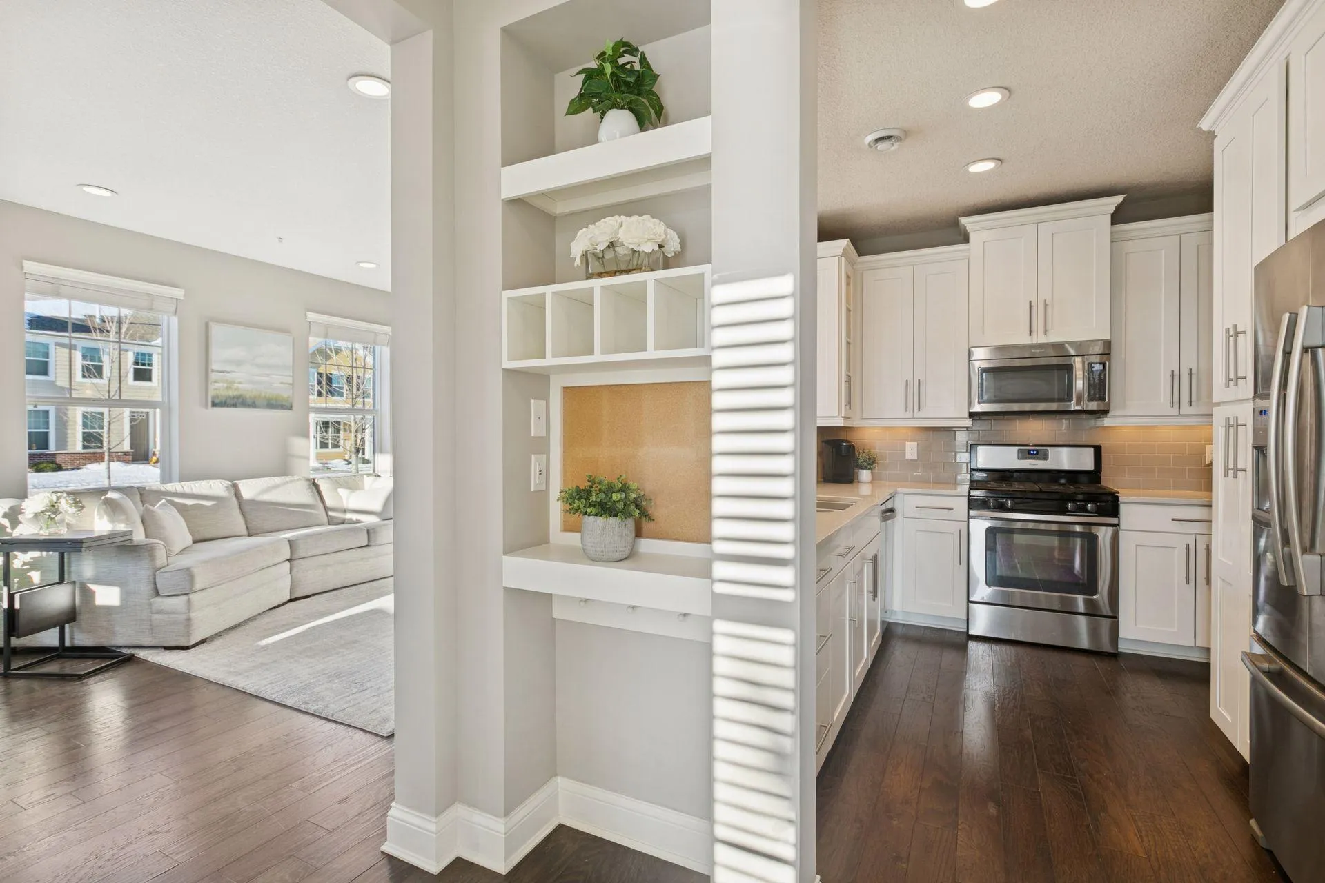 Rarely available end-unit townhome in Maple Grove’s high-demand Central Park neighborhood. Thoughtfully upgraded with the features buyers want most: high ceilings, hardwood floors, upgraded baseboards, gas fireplace, luxury fixtures, upgraded carpet and padding upper level, and energy-efficient LED lighting with dimmers throughout.