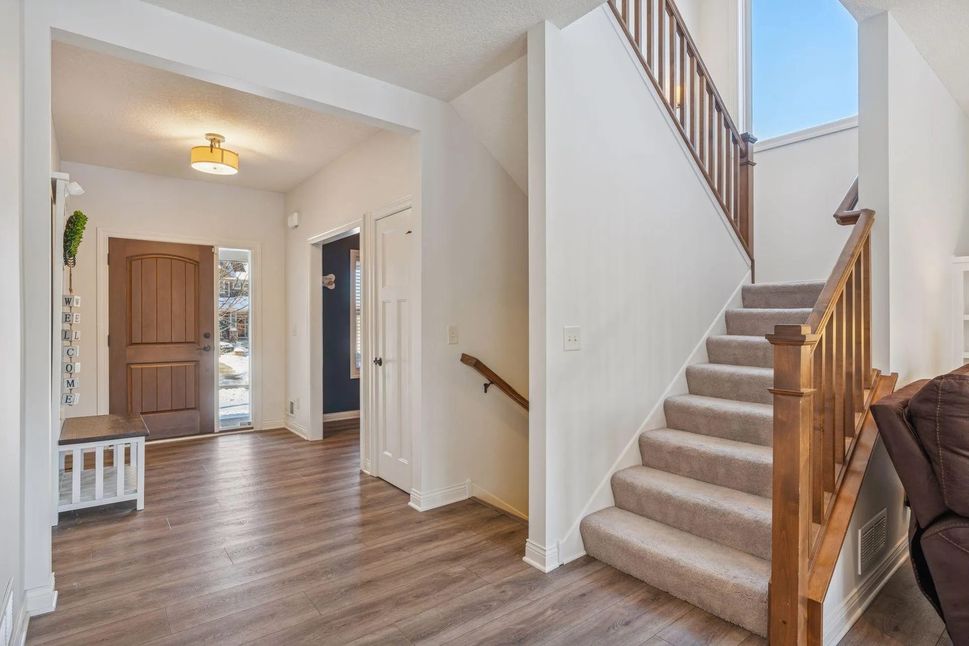 Set in the heart of the Lakes of Radisson, this custom-built Gorham home offers a comfortable, well-designed layout and has been beautifully maintained by its original owners. The main level offers an open layout with a comfortable living room centered around a gas fireplace and large windows that overlook the private backyard. Enjoy the gourmet kitchen with a large walk-in pantry, double ovens and large center island that offers extra seating. Step out to the maintenance-free deck and take in the peaceful, partially wooded backyard—private, quiet, and often visited by local wildlife. Upstairs, all three bedrooms are generously sized, including a spacious primary suite with a private ensuite, soaking tub, and double vanity. The upper-level laundry room is oversized and doubles as a great craft or flex space, and the loft adds even more room for a second living area, play space, or homework zone. The walkout lower level offers bonus space off the family room, plenty of storage, a fourth bedroom, and another full bathroom. Enjoy the front porch views overlooking Sunrise Lake. Enjoy access to miles of walking trails, parks, a splash pad, beach privileges, and close proximity to TPC Twin Cities, schools, and Blaine’s favorite local spots. A well-designed home in a location that’s easy to love.