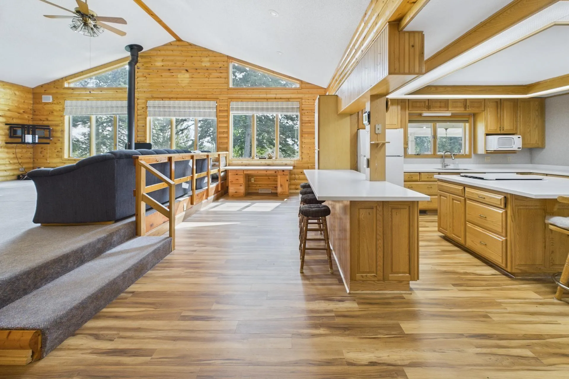 Looking for a lakefront setting where your boat, trailer and RVs have a year-round place to stay, too? It’s all right here on Upper Mission Lake, along with a lot more than one would ever expect, including an expansive house on 4.23 acres, complete with a multi-bay service shop, towering overhead doors, fenced gardens and more.