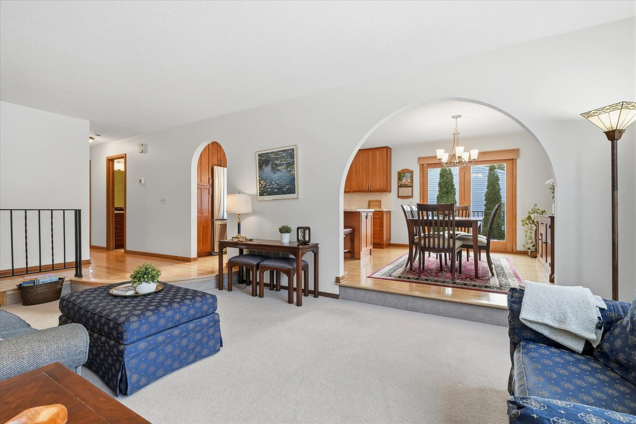 Welcome home to this beautifully updated gem in a phenomenal Shoreview location, just minutes from the community center, dining, and shopping! The stunning renovated kitchen showcases rich cherry cabinetry, stainless steel appliances, modern countertops, and maple hardwood floors that flow seamlessly through the hallway and bedrooms. Retreat to the spacious primary bedroom with a private ¾ bath, while two additional updated bathrooms offer comfort and convenience. The lower-level family room is made for entertaining, featuring a cozy gas fireplace and wet bar—perfect for game nights or gatherings with friends. A new furnace adds peace of mind, while an oversized two-stall garage provides plenty of room for storage, hobbies, and all your toys. Step outside to enjoy mature trees, peaceful backyard views, and frequent wildlife sightings. The maintenance-free exterior shines with James Hardie siding, stucco, and brick accents—offering both style and confidence!