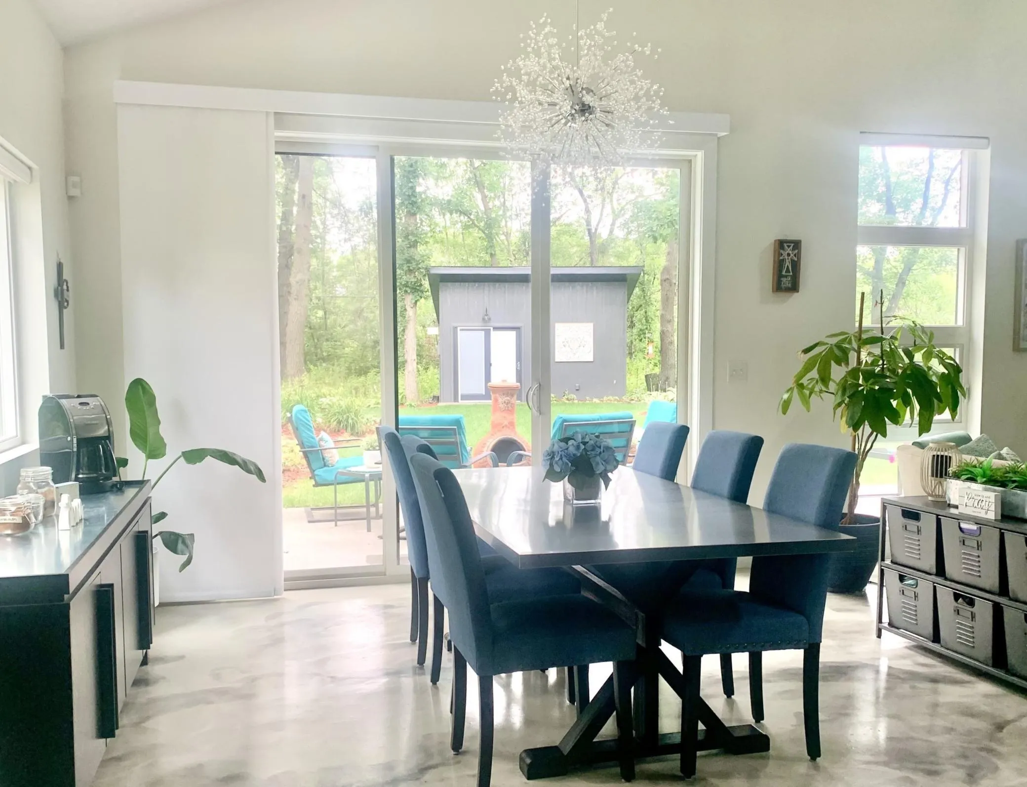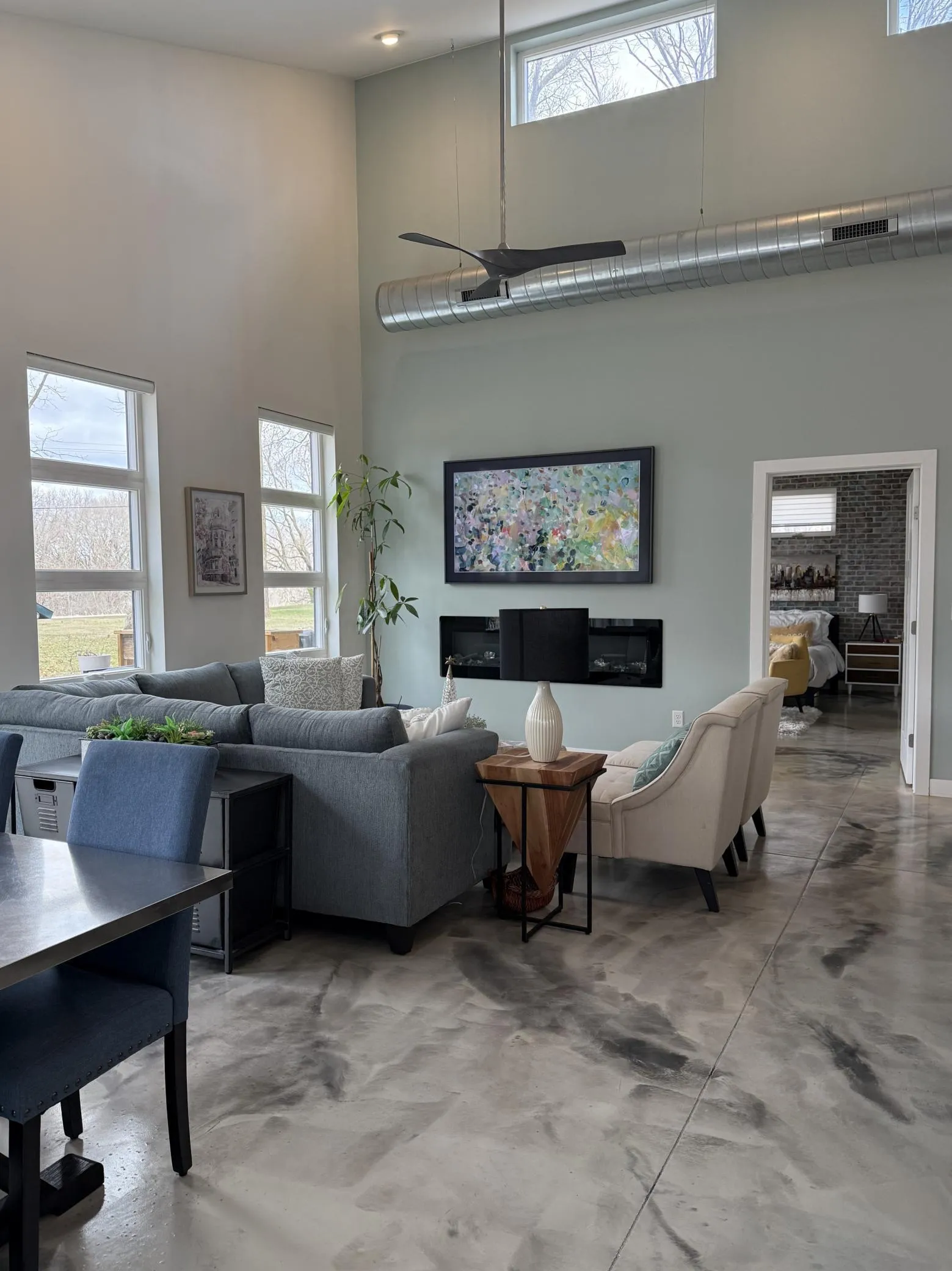 Welcome Home! This custom designed/built home is only available as sellers are building again! Everything is on one level with a Modern/Industrial home interior with exposed ductwork, clear story, large kitchen with a 10′ island and quartz top. Custom designed cabinets with many hidden features. Stainless steel appliances. Custom built barn doors, walk in closets, in-floor heat throughout the home. Custom (oversized) front door with a modern twist. Stained epoxy concrete floors throughout. Custom wall covering in Owner’s Suite and second bath. Garage is insulated, finished and offers in-floor heat as well. 50 AMP RV plug-in with outside area to park RV, Camper, or other toys. Mature oak trees. Beautifully landscaped yard with a firepit patio. A bonus on the property: a SHE Shed with custom stamped flooring, barn wood, and corrugated steel and a mini split for heating and cooling. Also, a 10’x40′ concrete patio for relaxing and enjoying with family and friends.. Home and Bonus Room custom built by Erbauer Built LLC. Home SF: 1,660; Bonus Room SF: 196.