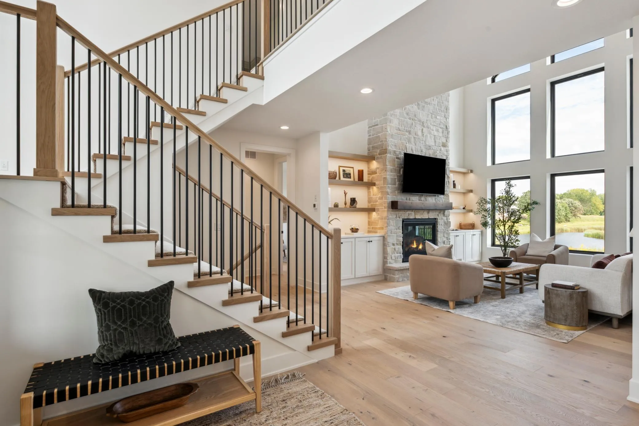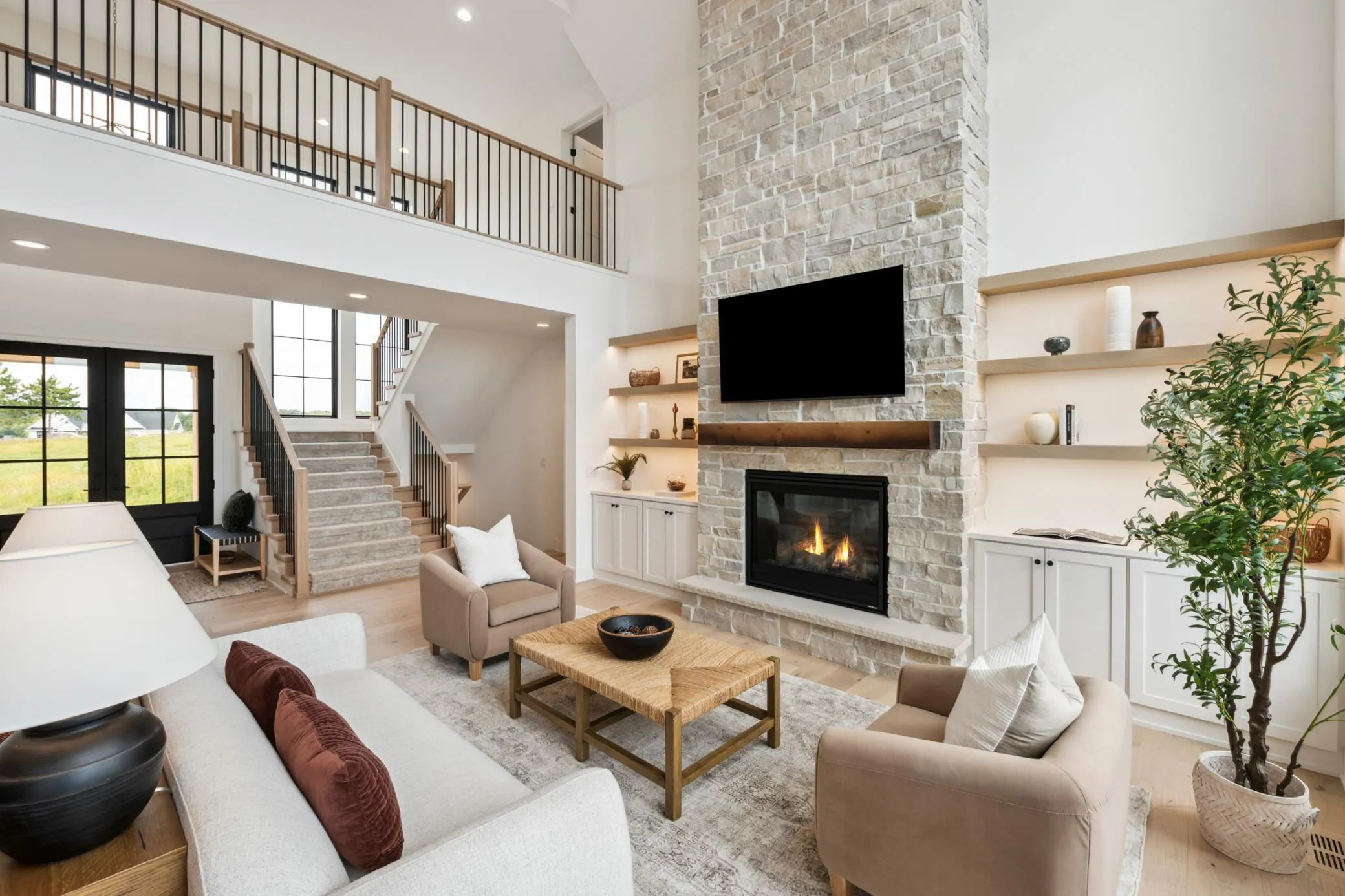 A catwalk overlooking the greatroom connects the spacious laundry room w/ the two bedrooms, J&J bathroom and a stunning owner’s suite with a spa-inspired bath, oversized shower, and soaking tub.