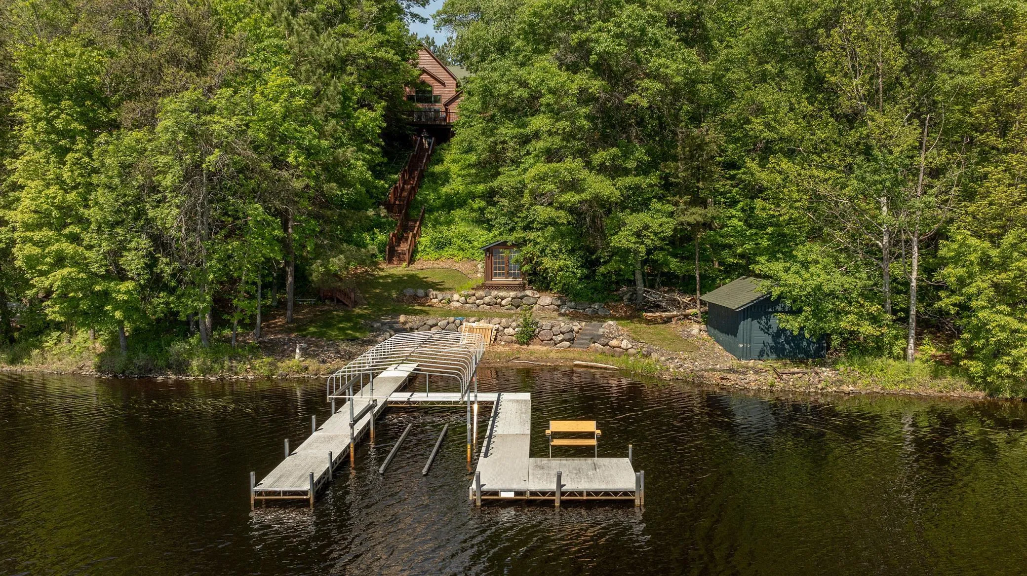 Approximately 5,000 sq ft year round home on Billhorn Bay, Big Sandy Lake. 4 Bedrooms plus Loft for added guests. Very luxurious Home with Gourmet kitchen and large deck lakeside for entertaining. 42 x 40 Family room lower level walkout., Comes completely furnished, all furniture all levels, all appliances, wall decor, pool table with high top chairs, & bubble hockey game. Bedroom & 3/4 bath. Main level has 3 bedrooms 2 full baths & large vault ceilings with gas burning stone fireplace. Garage with entertaining area with stainless appliance & shelfing. 150 ft sand shoreline with steps and tram to lots of level area. Boathouse & Bunkhouse at shore.. A Must See Property!