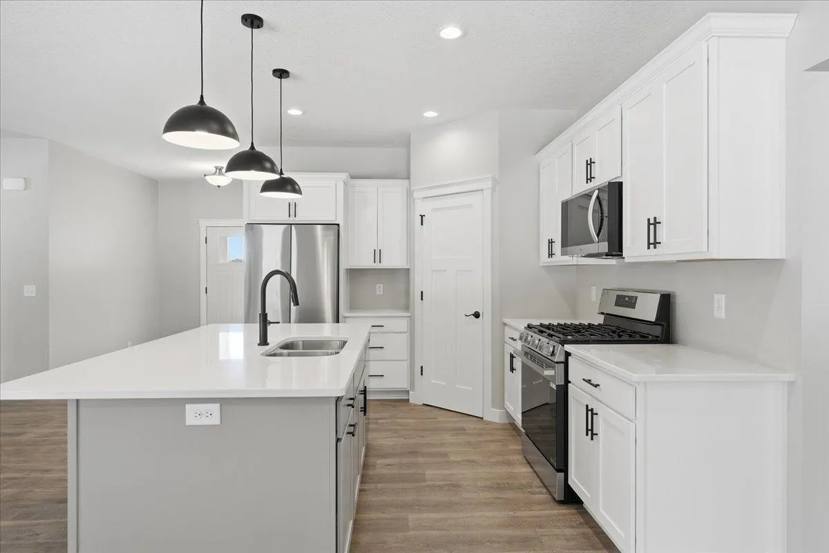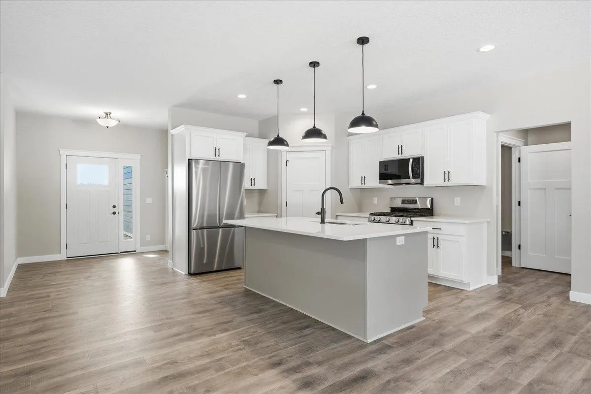 Custom-built completed new construction set on over 1.7 acres just North of New Richmond! This home offers true main-level living with no stairs inside or out, 3 bedrooms, 2 bathrooms, and 1,734 finished square feet. You’ll find quality upgrades, including Quartz countertops, eco-friendly PureTech Select flooring throughout, 9-foot ceilings, in-floor heat tubes roughed-in, stainless steel appliances, a gas fireplace, walk-in closets, and built-in bench seating. The oversized 3-car garage is insulated and sheet rocked for added convenience. Step outside to the covered patio and enjoy peaceful country views, your morning coffee, or an evening drink to wind down. Ideally located with easy access to Hwy 64, New Richmond, Stillwater, and Hudson. This lot also has the perfect set-up to build an additional detached garage!