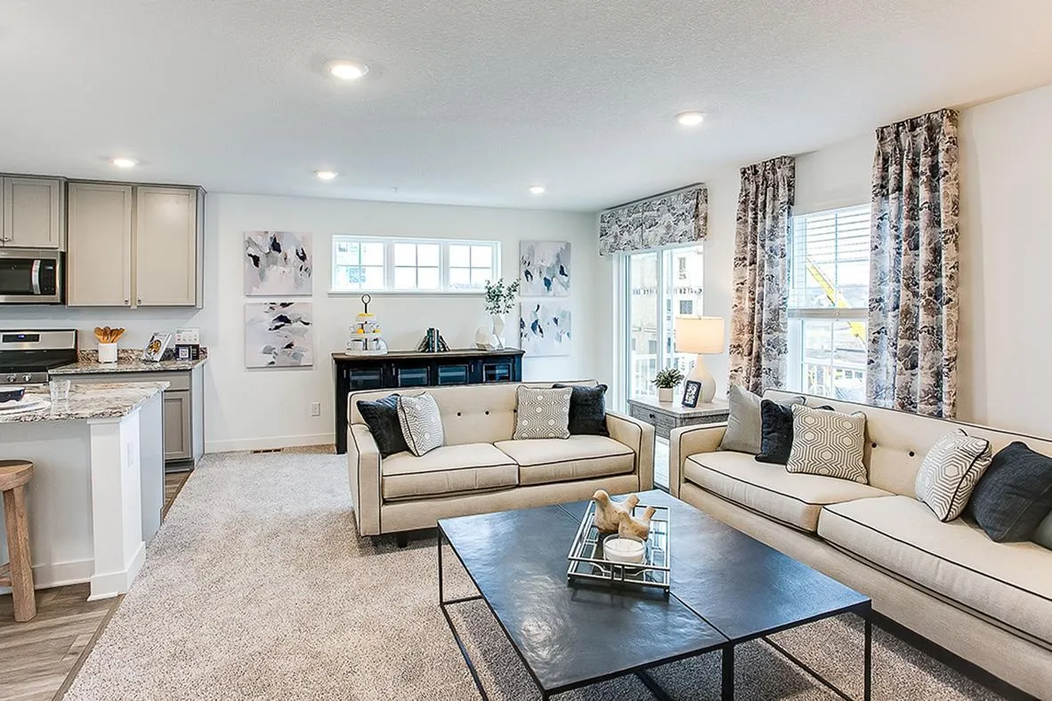 Ask how you can receive up to $15,000 in closing costs on this home! Come see why Hinton Woods is such a desirable place to call home! This beautiful END-UNIT home features 3 bedrooms, 2 bathrooms & laundry upstairs including a primary suite with walk-in closet. The finished lower-level flex room is perfect for guests, home office, or fitness room, just to name a few options! Be prepared to love your kitchen – this home has a designer inspired interior package with gray cabinets, expansive quartz island for 4-person seating, pantry, vented microwave hood and gas range! The open main floor has a 1/2 bath and is a perfect space to entertain or just kick back and relax! All homes come with a HUGE deck, industry best Smart Home technology package, and high efficiency mechanicals. Your littles can walk to Cottage Grove Elementary School via the neighborhood path and high schoolers will attend East Ridge High in Woodbury! Walk from your new home to the popular Junction 70 Grill, and enjoy shopping, entertainment, parks and more restaurants within minutes! HOA covers trash/recycling, exterior maintenance, lawn care, snow removal, insurance, and irrigation.