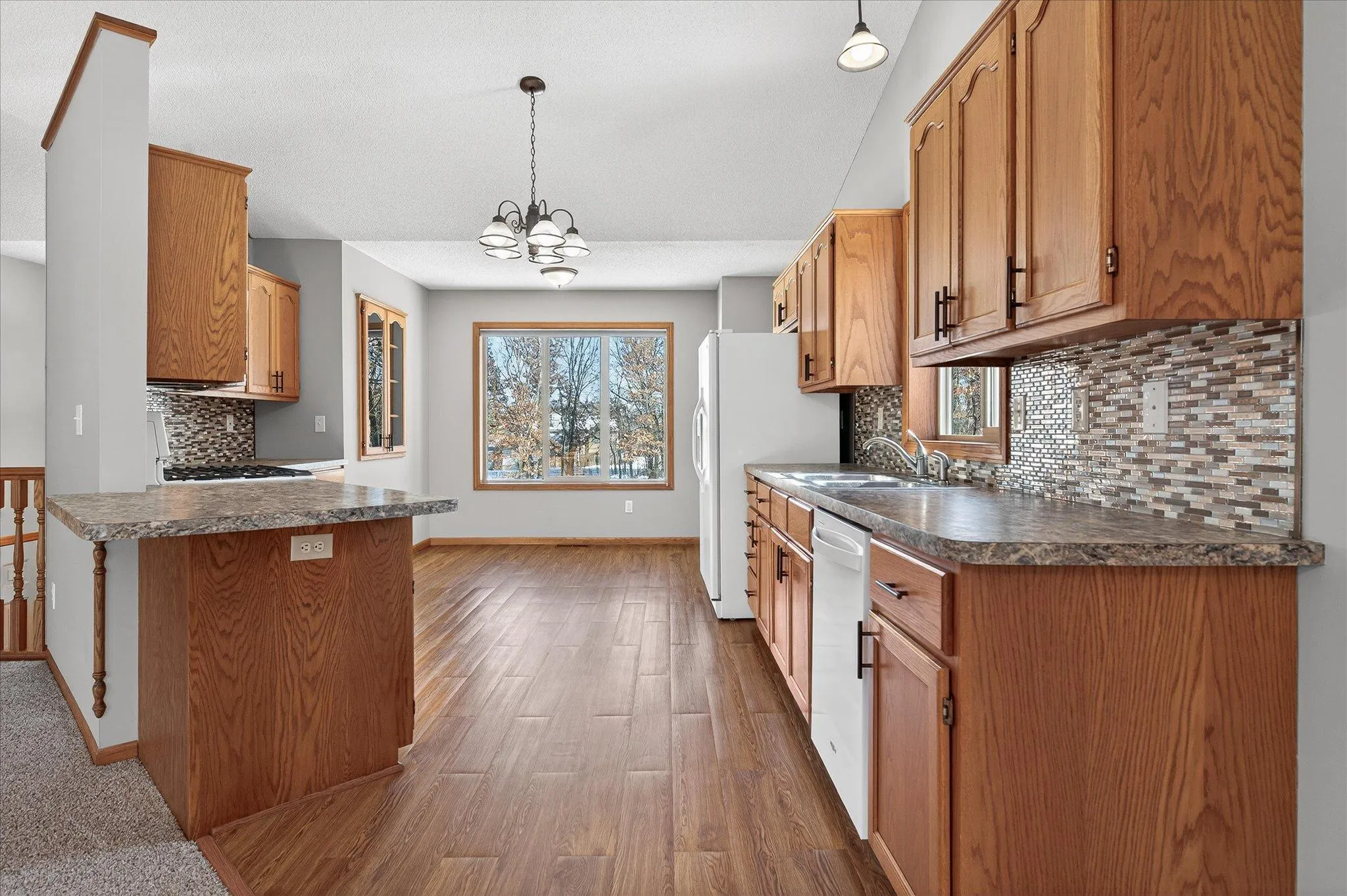 A rare highlight is the heated and insulated 3-car attached garage with epoxy floor and freshly repainted interior. The property also includes a 30×40 pole building with radiant heat, concrete floor, tall overhead door with opener, LED lighting, mezzanine storage, shelving, air lines, and an air compressor. The pole building has its own driveway, separate electric meter, and its own gas meter for the heat. Additional storage is provided by a 12×16 shed conveniently located near the garage and driveway.