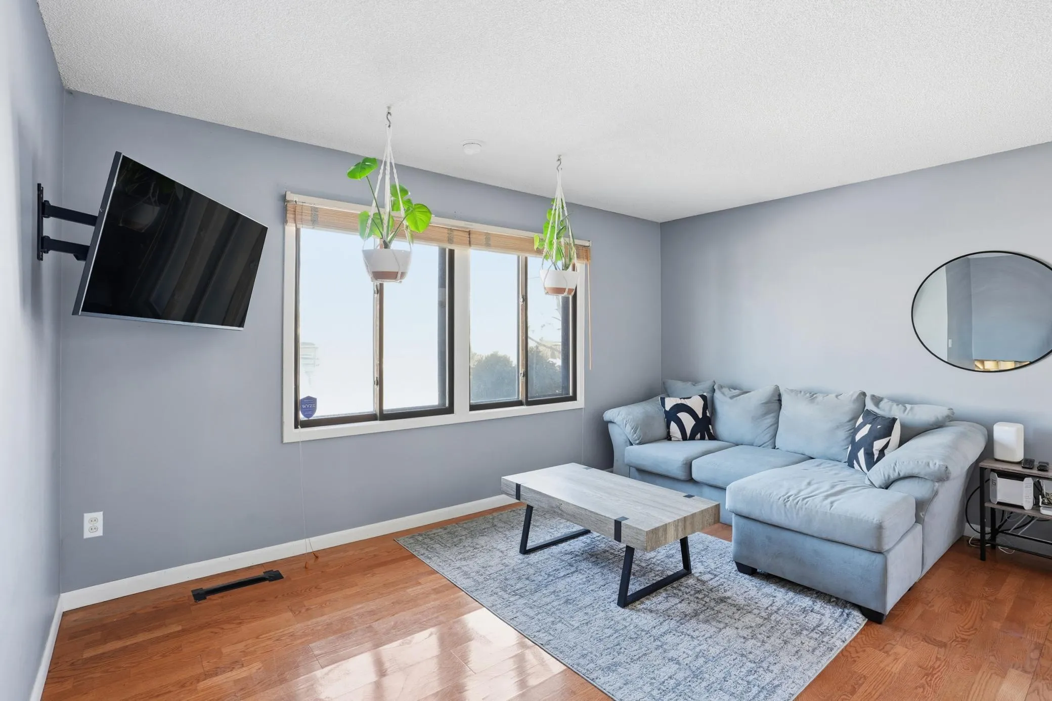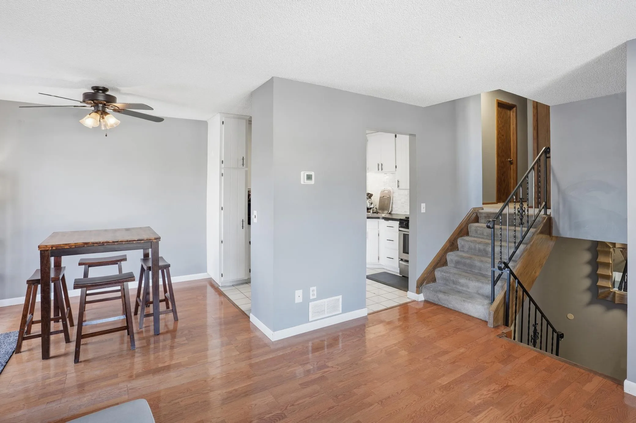 Move-in-ready end-unit townhome in convenient Brooklyn Park location! Enjoy two spacious bedrooms on the upper level. Primary suite includes a huge walk-in closet and a walk-thru to bathroom! Large living room and spacious kitchen with stainless steel appliances. Dining room leads to private deck, which provides beautiful views of Central Park! Charming brick fireplace in the finished basement, that can also be used as a third bedroom. Move right on in! Freshly cleaned carpet, beautiful hardwood floors in the living