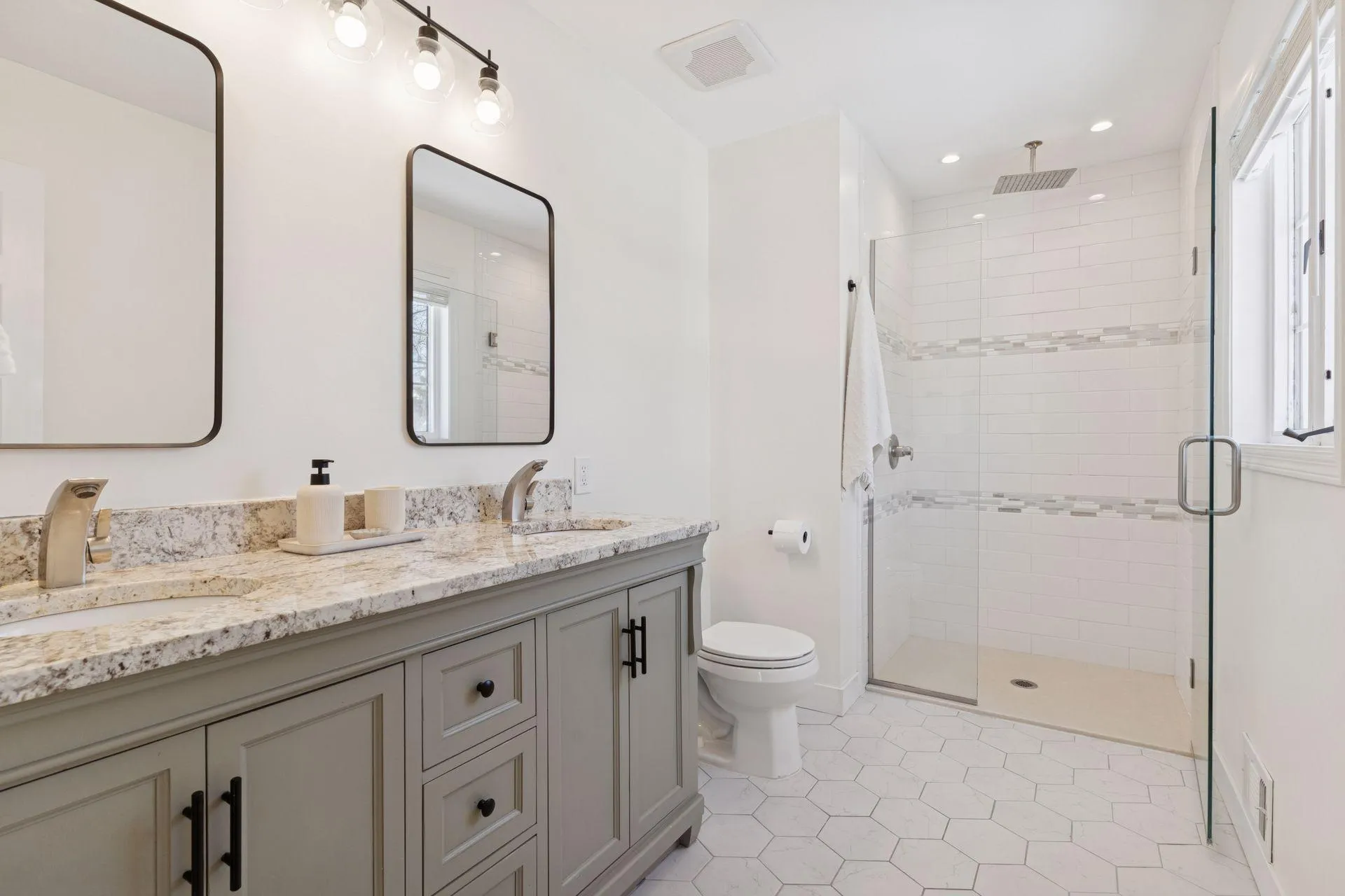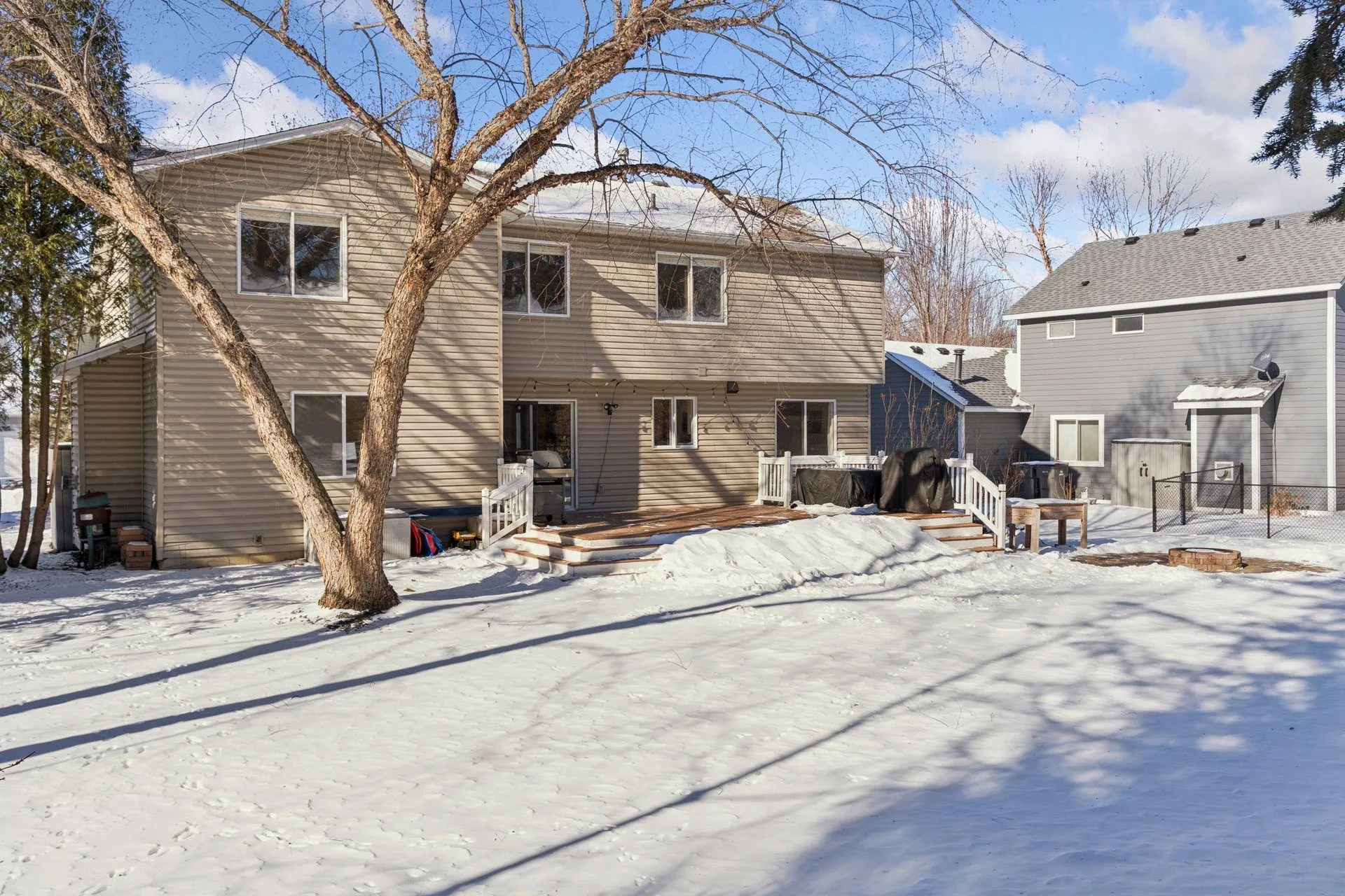 Welcome home! Updated and upgraded two story with 4 bedrooms up! Open concept main level and finished lower level. Kitchen offers lots of white cabinets, granite counters, tile backsplash, stainless steel appliances, gas range, and rollout drawers. Primary suite includes a private en suite with dual vanity, tile shower, and walk in closet. Enjoy the gas fireplace, hardwood floors, closet organizers, window treatments, egress window in the lower level, and ring doorbell. White doors and trim throughout. NEW furnace, heat pump (AC), water heater, driveway, carpet, paint, and more! Roof is only 3 years old! All of the bathrooms are updated! Lots of storage space. Step outside to your flat backyard, large deck, and paver patio with firepit. Exterior offers maintenance free siding, gutters with guards, and storage shed. Schedule your private tour today!
