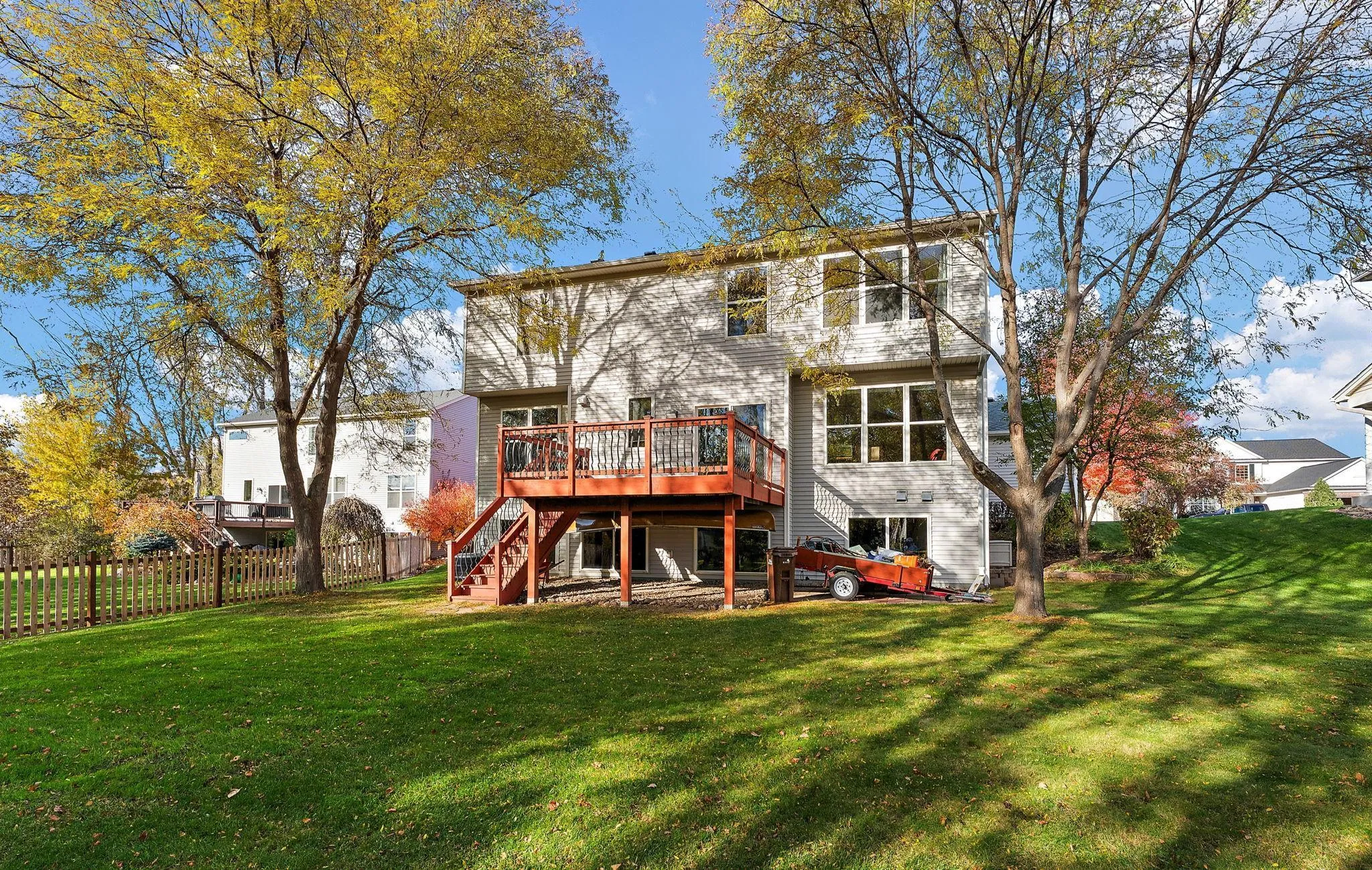 Step outside and enjoy Minnesota, living at its best on the party-sized deck, ideal for entertaining or relaxing. The open great room is anchored by a cozy fireplace and complemented by gleaming real hardwood floors that flow throughout the entire home. The thoughtfully designed layout balances comfort and functionality, making it perfect for both daily living and gatherings.
