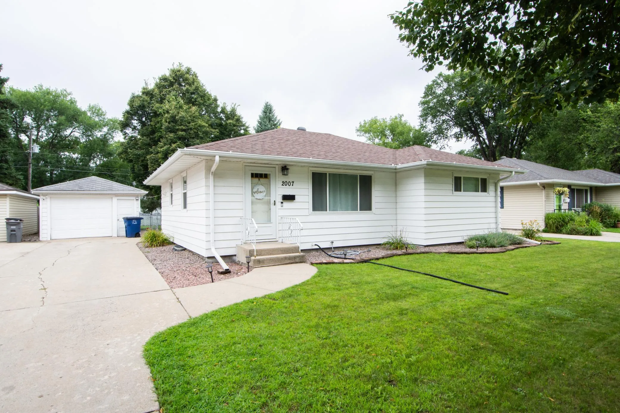 Check Out This South Moorhead Rambler with almost 2400sq ft! Enjoy the comfort of three separate living spaces in this move-in ready home. On the main floor, you’ll find a living room with updated flooring, plus a flex space with vaulted ceilings and in-floor heat—perfect if you are looking for additional space! A bar area with mini fridge and cabinets makes entertaining easy. The main level also includes 2 bedrooms and a full bath with a tiled shower. The lower level offers even more space with a family room featuring new flooring, a 3rd bedroom with attached ¾ bath, a laundry room, and plenty of storage—plus potential for a 4th bedroom. Laundry room/storage room features just finished epoxy flooring. Additional highlights updates include newer central air-new, newer hot water heater, main floor living room and bathroom flooring updated, forced heat and durable metal siding. Step outside to a fully fenced backyard with a spacious patio and mature trees that provide plenty of shade and privacy. This home truly blends comfort, function, and charm—ready for its next owner to enjoy!