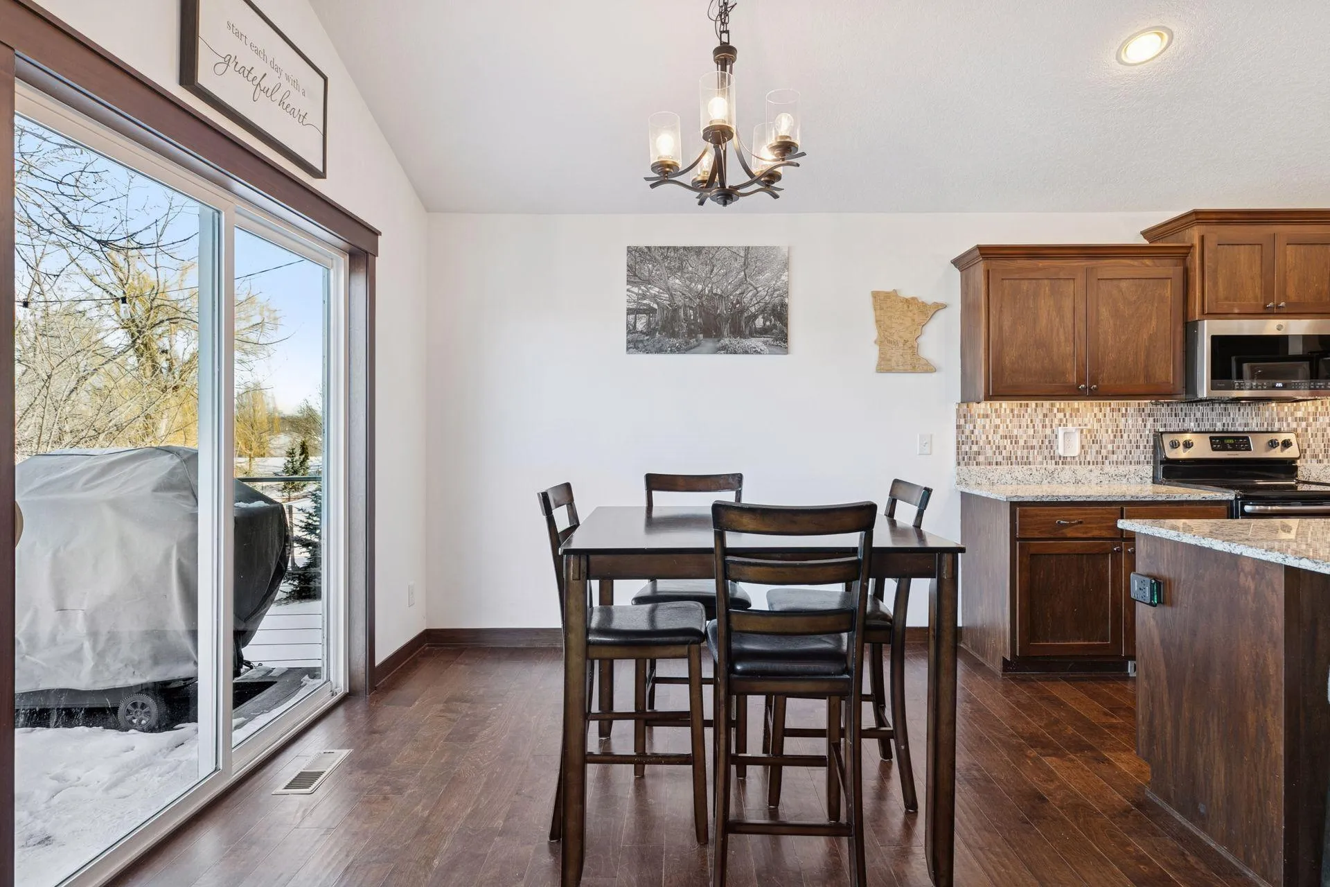 Welcome to this beautifully designed home featuring an open floor plan with 4 bedrooms and 3 bathrooms, abundant natural sunlight and thoughtful finishes throughout. The main level features hardwood flooring, vaulted ceilings and tasteful color choices. The open kitchen is both functional and stylish offering granite countertops, stainless steel appliances, a spacious 7-foot granite island/breakfast bar plus ample counter and cabinet spaces. The informal dining area adjoins the kitchen space where a convenient patio door leads to the east-facing 15×12 composite deck creating the ideal place for your morning cup of coffee and grilling in the evening. The spacious living room is anchored by a striking stone surround gas-burning fireplace making it the perfect gathering space for family & friends. The main floor private primary suite includes an elegant tray ceiling, walk-in shower, double sinks and an impressive 8×6 walk-in closet. The lower level ¾ bath boasts another double sink with a Carrera marble vanity and a walk-in shower with charming penny tile flooring & a stylish sliding glass door. Additional highlights include main floor laundry/dedicated mudroom and a walk-out lower level with 8-foot ceilings & waterproof LVP flooring. The secluded backyard offers lasting privacy and year round peaceful views of the protected wetlands. Conveniently located on a quiet dead-end street near schools, miles of walking/biking trails, community playgrounds, the YMCA, shopping, golf courses & so much more! Buy & begin enjoying a home that blends comfort, style and location into one exceptional opportunity.