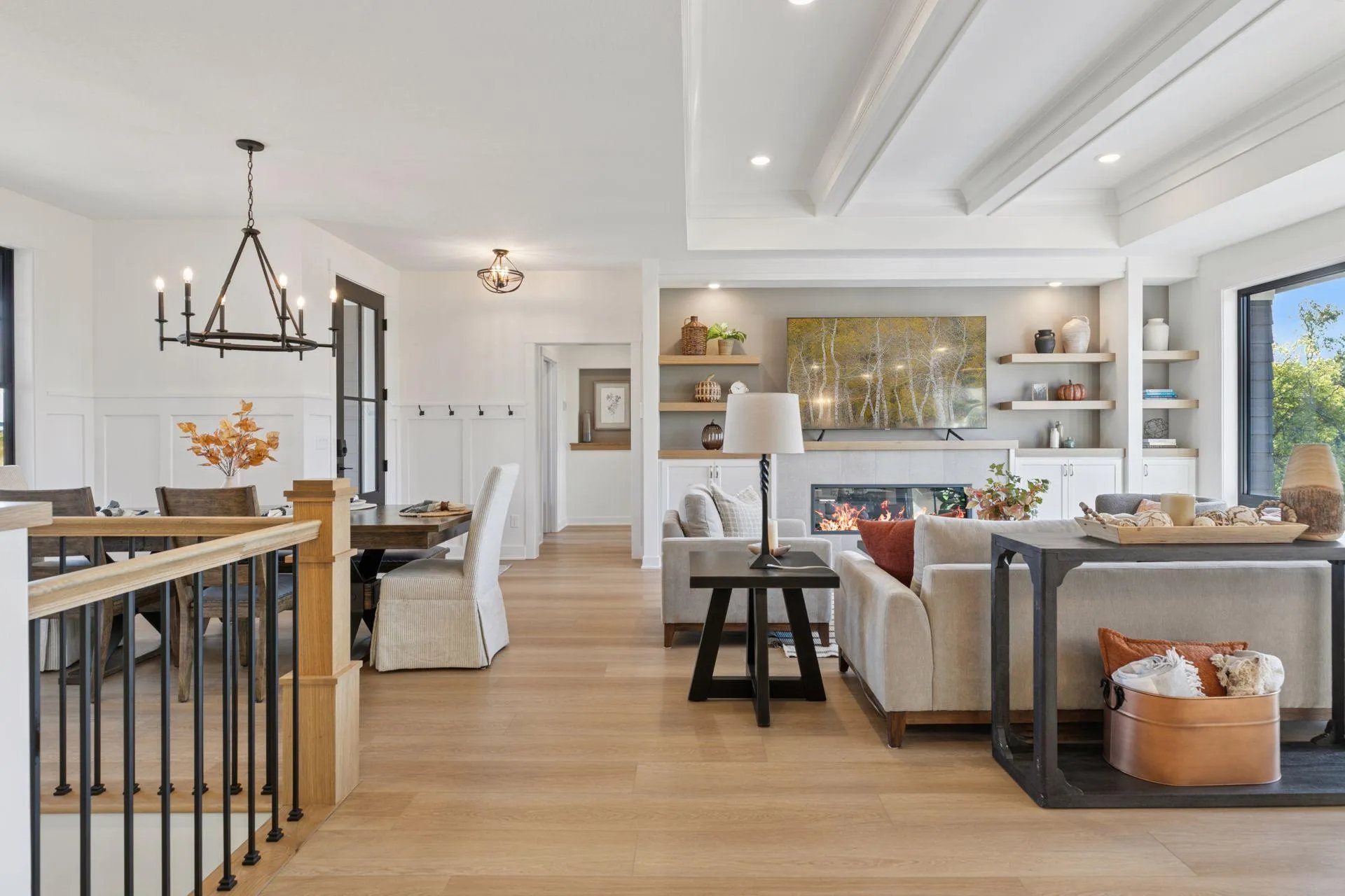 Welcome to Luxury Living and the beauty of Waters Edge! Step into exceptional craftsmanship and timeless design with this custom-built home by Derrick Homes, renowned for their precision detailing, high-end finishes, and exquisite millwork. Located in the highly sought-after Waters Edge neighborhood, this stunning property sits on over 2.75 acres. From the moment you enter, you’ll be captivated by the open-concept floor plan, ideal for both everyday living and entertaining. The gourmet kitchen is a true showpiece, featuring quartz countertops, custom cabinets, a decorative tile backsplash, stainless steel appliances, a walk-in pantry, and an oversized center island perfect for gathering. Expansive picture windows fill the home with natural light, while the living room’s fireplace provides a warm, inviting ambiance. Step onto the deck and enjoy the peaceful beauty of nature just beyond your door. The primary suite is a private retreat, offering a spa-like ensuite with a luxurious walk-in tile shower, dual vanity, and an expansive walk-in closet. A second main-floor bedroom provides flexibility for guests or a home office. Additional features include a large laundry room with attached coat closet, a mudroom with bench and hooks, 2″ Styrofoam under the lower level, and an insulated/heated 3-car garage for all your storage needs. The finished lower level is built for entertainment, complete with a spacious great room, a wet bar, two additional bedrooms, each with walk-in closets, and a full bathroom.