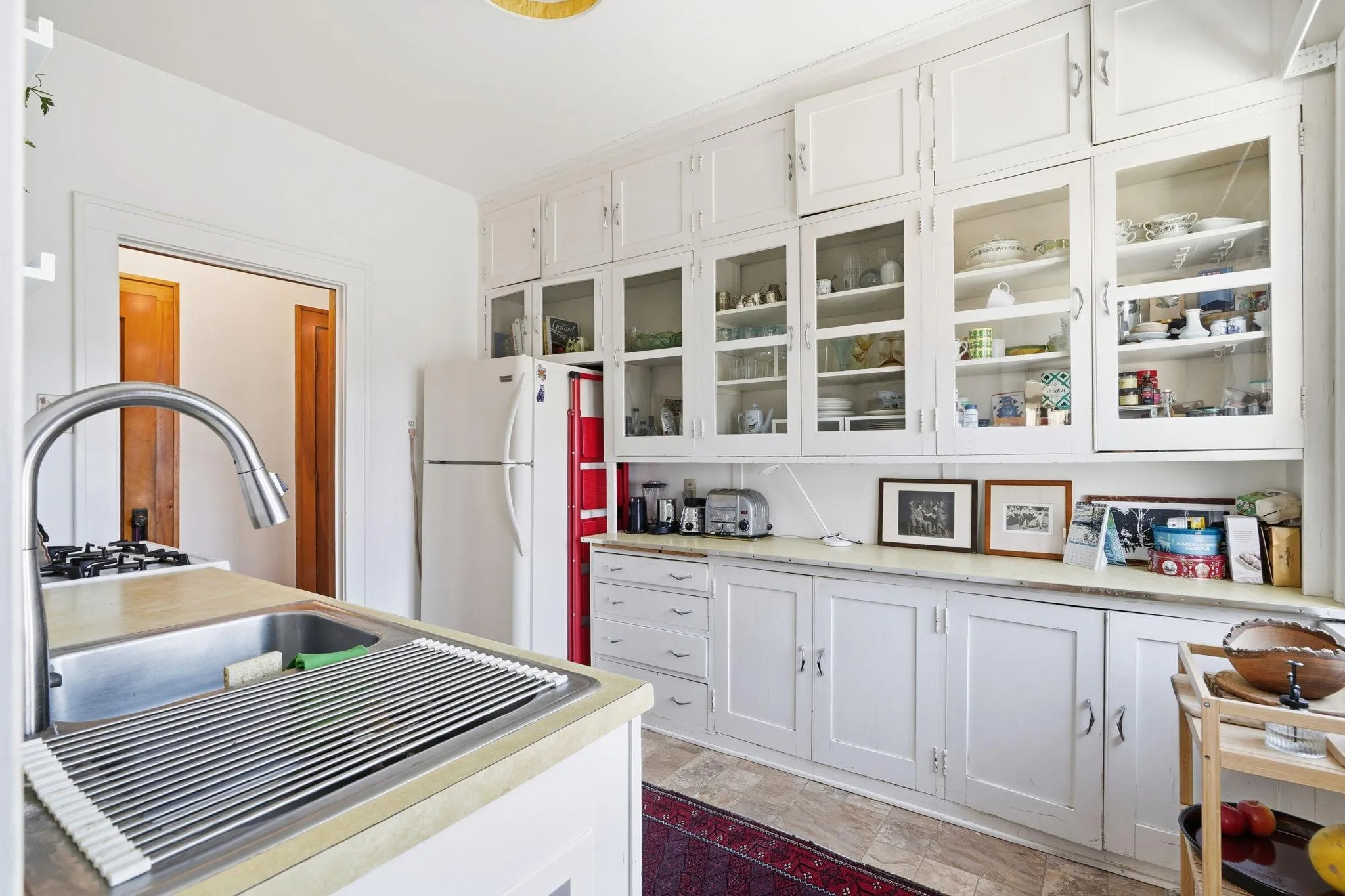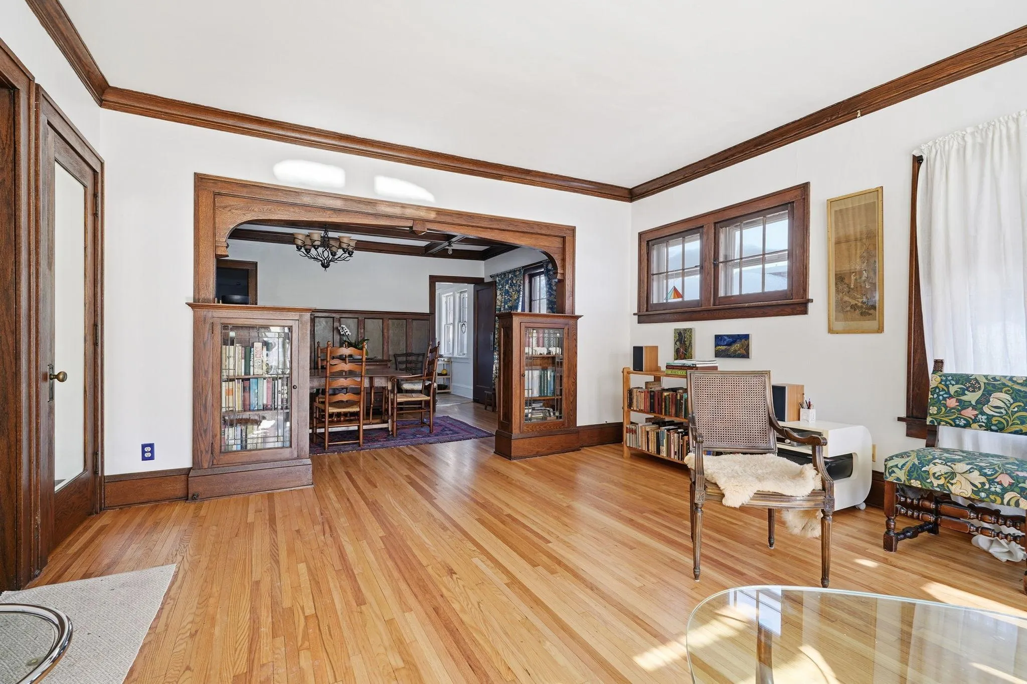 Inside, the building showcases original woodwork, with most units featuring hardwood floors, coffered ceilings, and classic built in dining room buffets. Four of the five units share a generous two bedroom, one bath floor plan with 9 foot ceilings, abundant natural light, and ample storage throughout. Additional private storage is available in the basement, along with shared laundry and a workshop. The backyard offers a welcoming space to gather, garden, or grill. A rare opportunity, don’t miss it.