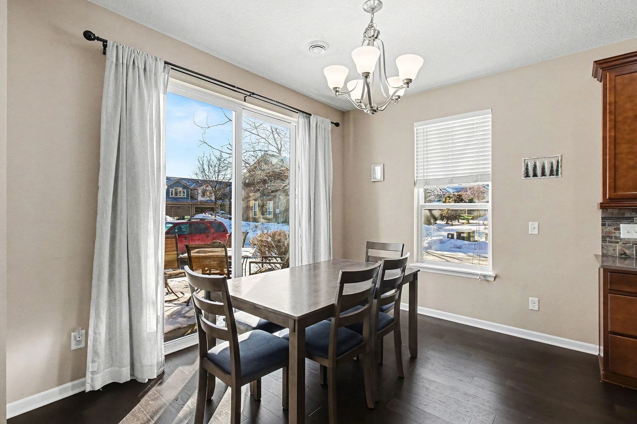 Move-in ready end-unit townhome offering 3 bedrooms and 3 bathrooms in a prime Blaine location! This bright and spacious home features an open main-level layout with 9-foot ceilings, hardwood floors, and a cozy gas fireplace—perfect for relaxing or entertaining. The kitchen truly stands out with stainless steel appliances, a gas range, quartz countertops, and an inviting informal dining area with a walk-out for easy indoor-outdoor living. Upstairs, you’ll love the versatile loft space complete with built-in ceiling speakers—ideal for a home office, playroom, or second living area. All three bedrooms are conveniently located on the same level, along with the washer and dryer, making everyday living effortless. The private owner’s suite includes a walk-in closet and spa-like bath featuring a glass shower and large soaking tub. An attached garage adds extra comfort and convenience. One of the best perks is the low-maintenance lifestyle—enjoy not having to worry about exterior upkeep thanks to the HOA, plus easy access to multiple nearby guest parking areas just steps away. The location can’t be beat: close to parks, walking trails, the National Sports Center, shopping, restaurants, and entertainment. Situated perfectly between Lexington and Central, you’ll have quick access to grocery stores and amenities in every direction. A beautifully maintained home in a fantastic setting—don’t miss this one!