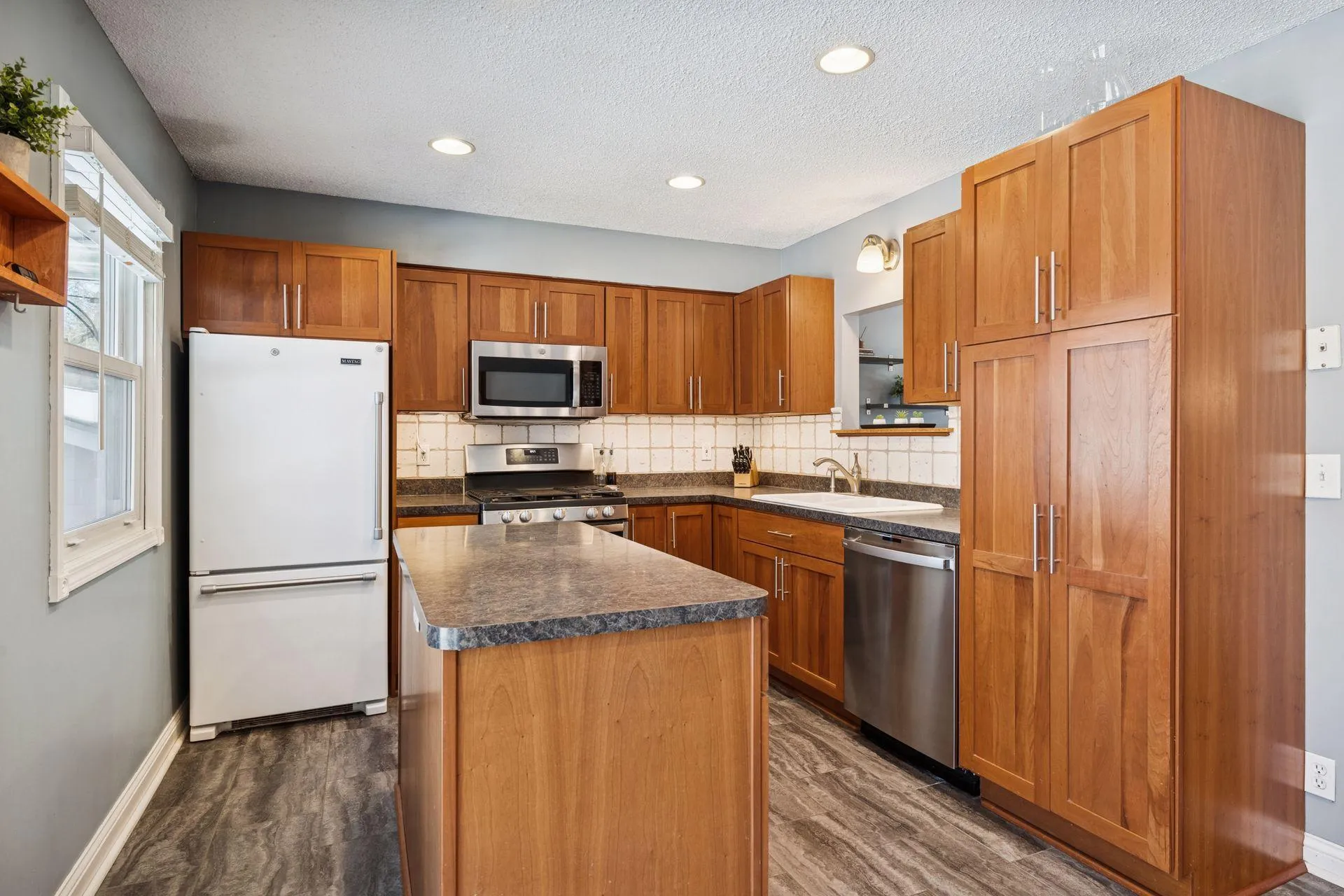 closet! Lower level boasts large family room with great sunlight, gas fireplace, 3/4 bath, 3rd bedroom, and HUGE laundry room with additional refrigerator, work bench, and storage. “Bonus” space in the lower level family room doubles as a great home office space. Oversized 2+ car garage is an added bonus. Easy to show and quick close possible.
