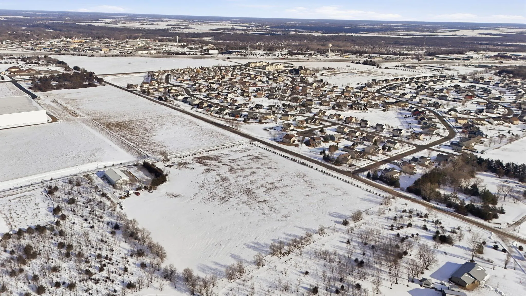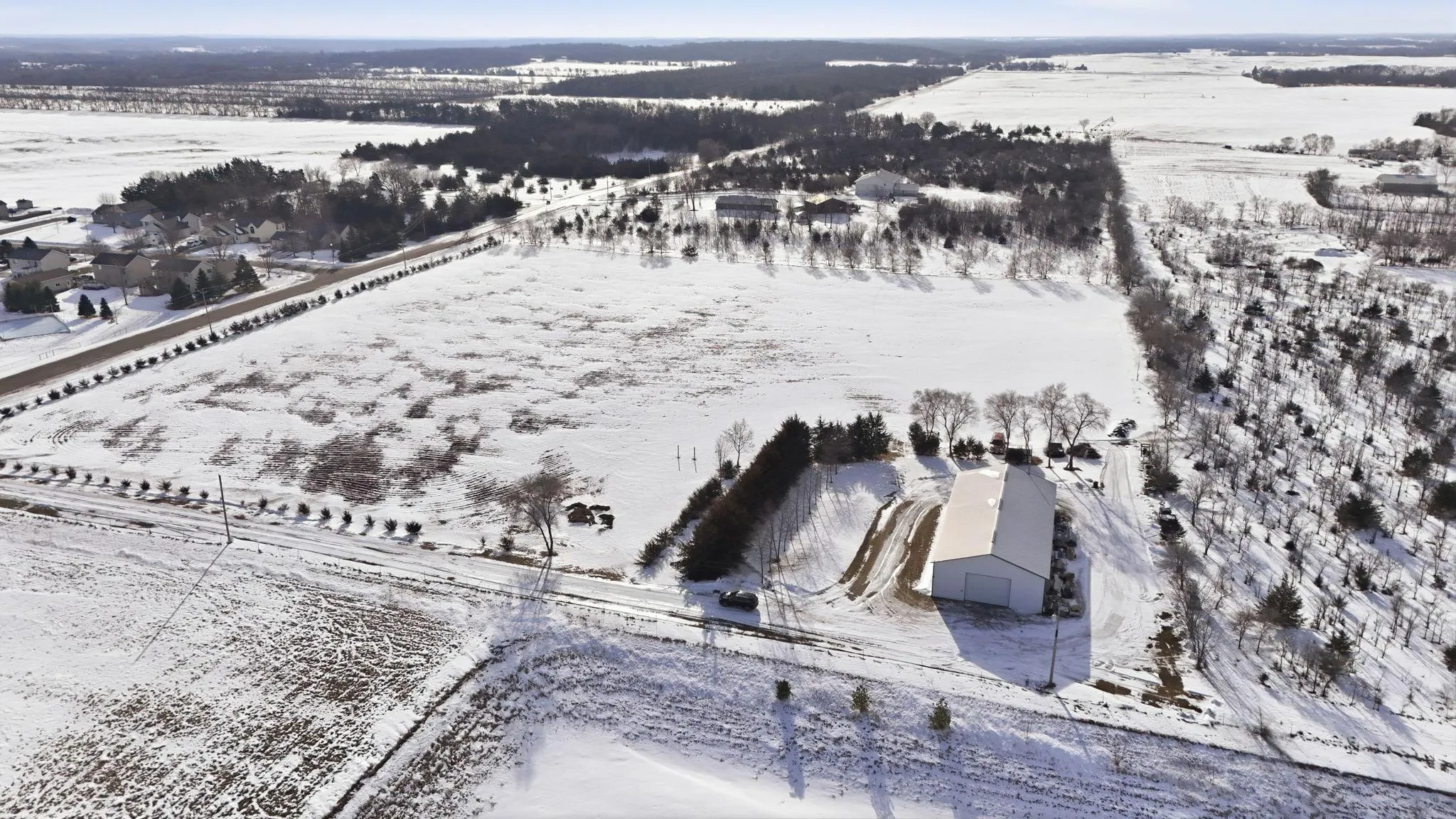 Endless possibilities await with this 3,600 SF pole shed situated on nearly 10 acres of open land. 2,400 SF heated and insulated, offering an ideal setup for a workshop, business operation, hobby space, or future conversion. The remaining 1,200 SF provides dry storage, perfect for equipment, vehicles, or seasonal use.