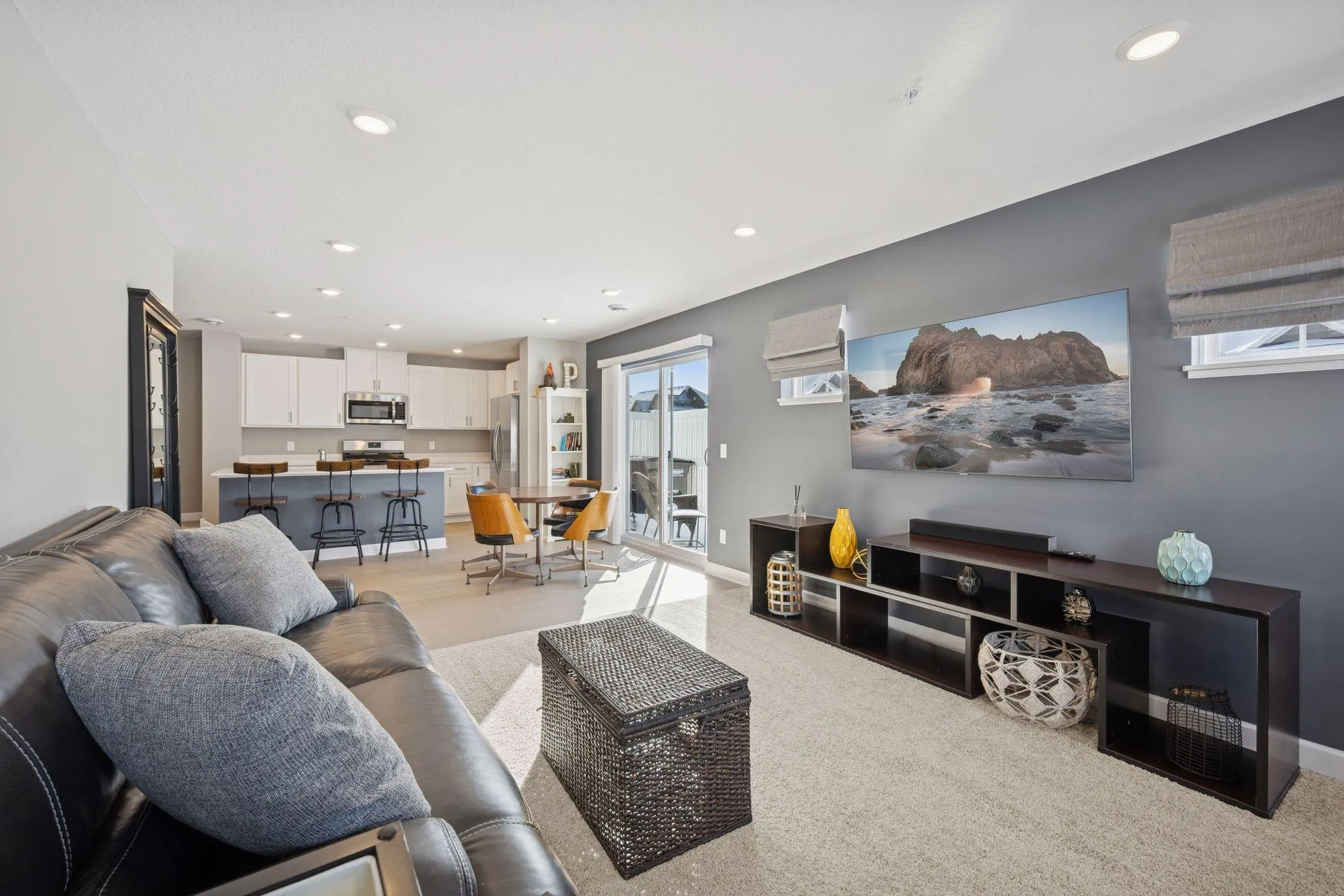 Introducing 14965 Gibbon Way NW in Ramsey… Set in a vibrant community and ready for you today. Why build and wait when you can enjoy new construction living now? Let’s step inside and discover the refined details this exceptional end-unit has to offer. The main level boasts an open-concept design ideal for effortless gatherings with family and friends. A bright and inviting Great Room flows seamlessly into a chef-inspired kitchen featuring quartz countertops, elegant shaker-style white enameled cabinetry with ample storage, stainless steel appliances, and a large center island with seating for three. The informal dining area opens to a 14×7 patio—perfect for relaxing or grilling, overlooking a spacious green area ideal for yard games or letting your furry friends run. Gorgeous luxury vinyl plank flooring spans the kitchen, dining, and Great Room, complemented by generous LED overhead lighting. A convenient powder room and mechanical room are just steps away. The upper level features three spacious bedrooms along with a versatile loft—ideal for a home office or relaxing retreat. An upper-level laundry room adds everyday convenience. The primary suite offers a luxurious ¾ bath with a double-sink white enameled vanity, quartz countertops, and a large walk-in closet with a window providing beautiful natural light. A full bath serves the additional two generously sized bedrooms. The home’s interior has been professionally painted throughout, showcasing warm, inviting natural tones that create a refined and welcoming atmosphere! Enjoy convenient access to local shops, dining, coffee spots, parks, and trails, along with quick and easy access to Highway 10, all just minutes away. Added value includes reduced property taxes for 2026. Call this exceptional home yours today!