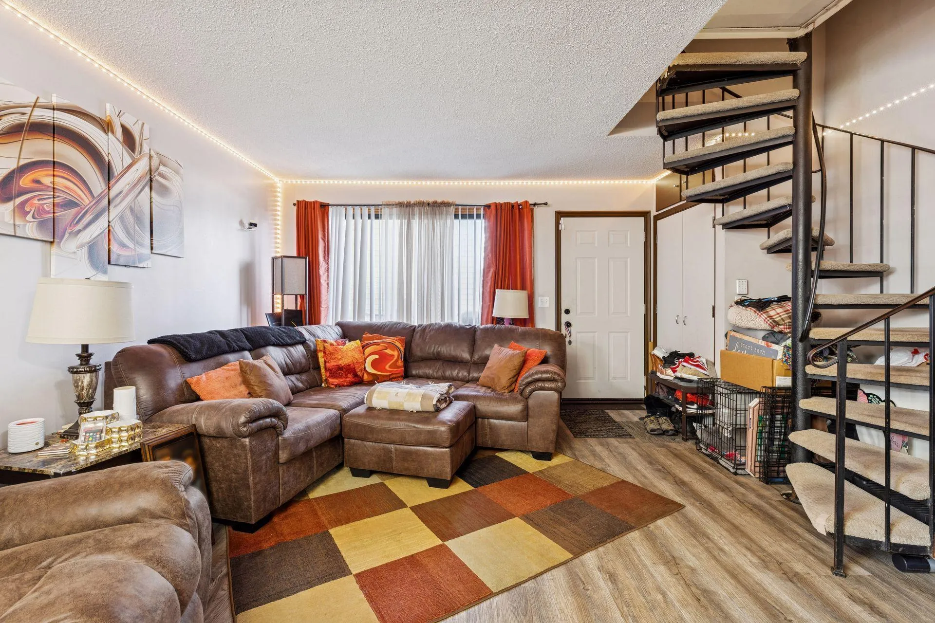 The main level features a bright and open living space that complements any décor. The remodeled kitchen is equipped with modern cabinetry, updated countertops, and stainless steel appliances, offering both style and functionality. A full-size washer and dryer are conveniently located in the unit, adding everyday ease and eliminating the need for shared laundry facilities.